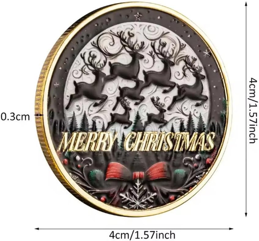 Monete Commemorative Buon Natale Alce Nero Placcato Oro Nastro Rosso Fiocco di Neve Souvenir Collezione di Monete Regali Arredamento per La Casa