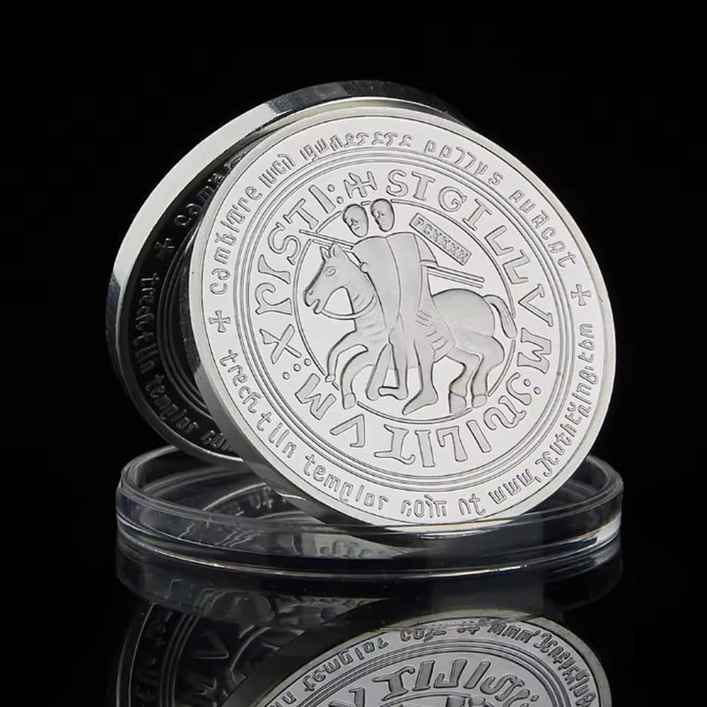 Monete Commemorative, Monete Commemorative Blu, Monete Commemorative con Scudo Templare, Monete Souvenir, Monete da Sfida in Metallo Placcato Argento, Oggetti da Collezione