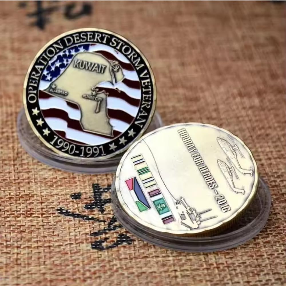 Monete Commemorative Monete della Guerra del Kuwait 1990-1991 Moneta Souvenir Placcata in Bronzo per Veterani Dell'Operazione Desert Storm degli Stati Uniti
