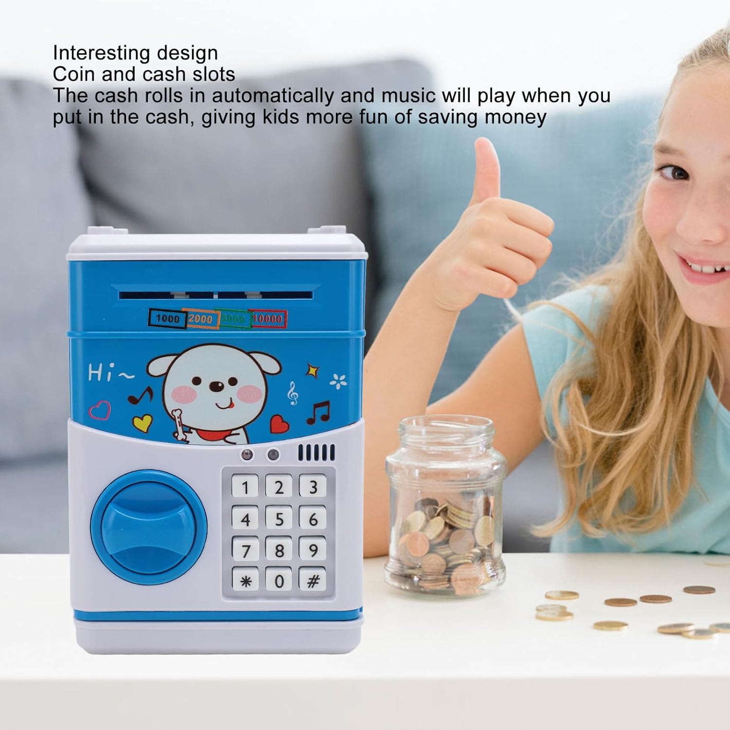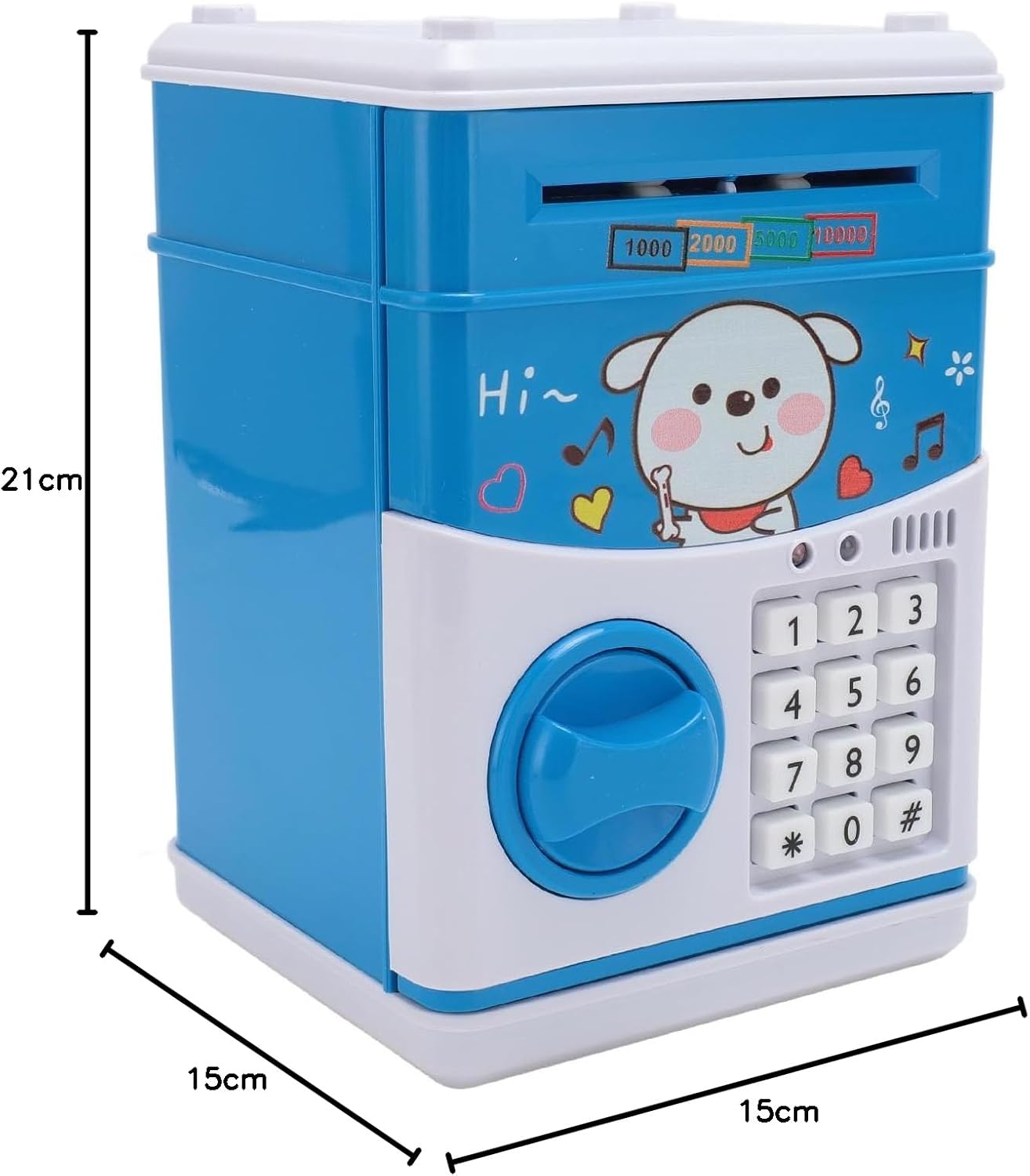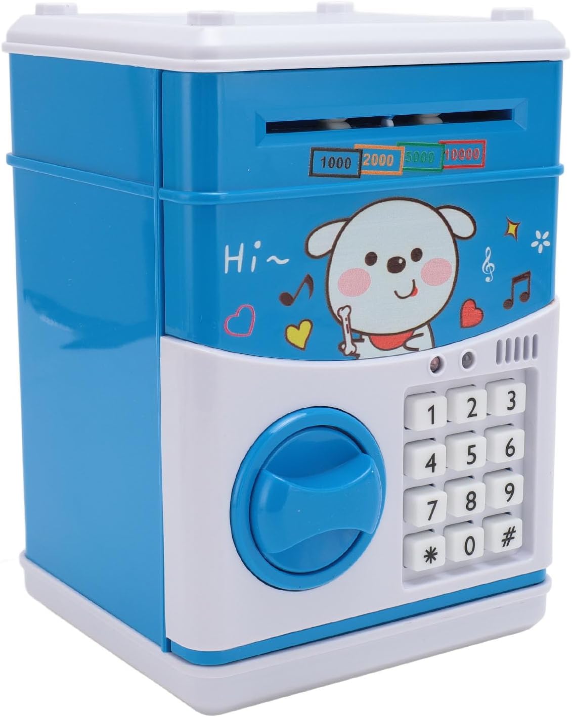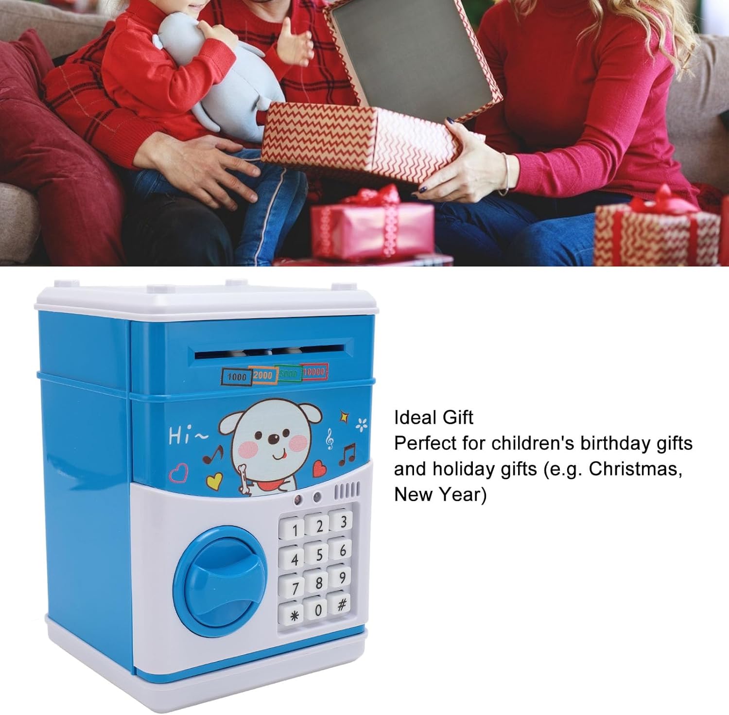 Coltivare le abitudini di risparmio di denaro: la scatola di denaro per bambini è un piccolo strumento di risparmio per aiutare i bambini a sviluppare l'abitudine di risparmiare denaro. Design divertente: Kids Money Box ha slot di monete e contanti. Il contante rotola automaticamente e la musica suona quando metti in contanti, portando più divertimento per i bambini a risparmiare. ideale: la scatola di denaro per bambini è la scelta migliore per regali di compleanno e regali per le vacanze (come Natale, nuovo anno) per i bambini. Materiale sicuro: la scatola di risparmio di denaro per bambini è realizzata in plastica ABS ecologica; Design di simulazione , nessun odore, robusto, non facile da rompere. Lungo duratura: richiede 3 batterie AA 1,5 V (non incluse), fornendo energia duratura per mantenere la scatola di denaro funzionante senza intoppi.