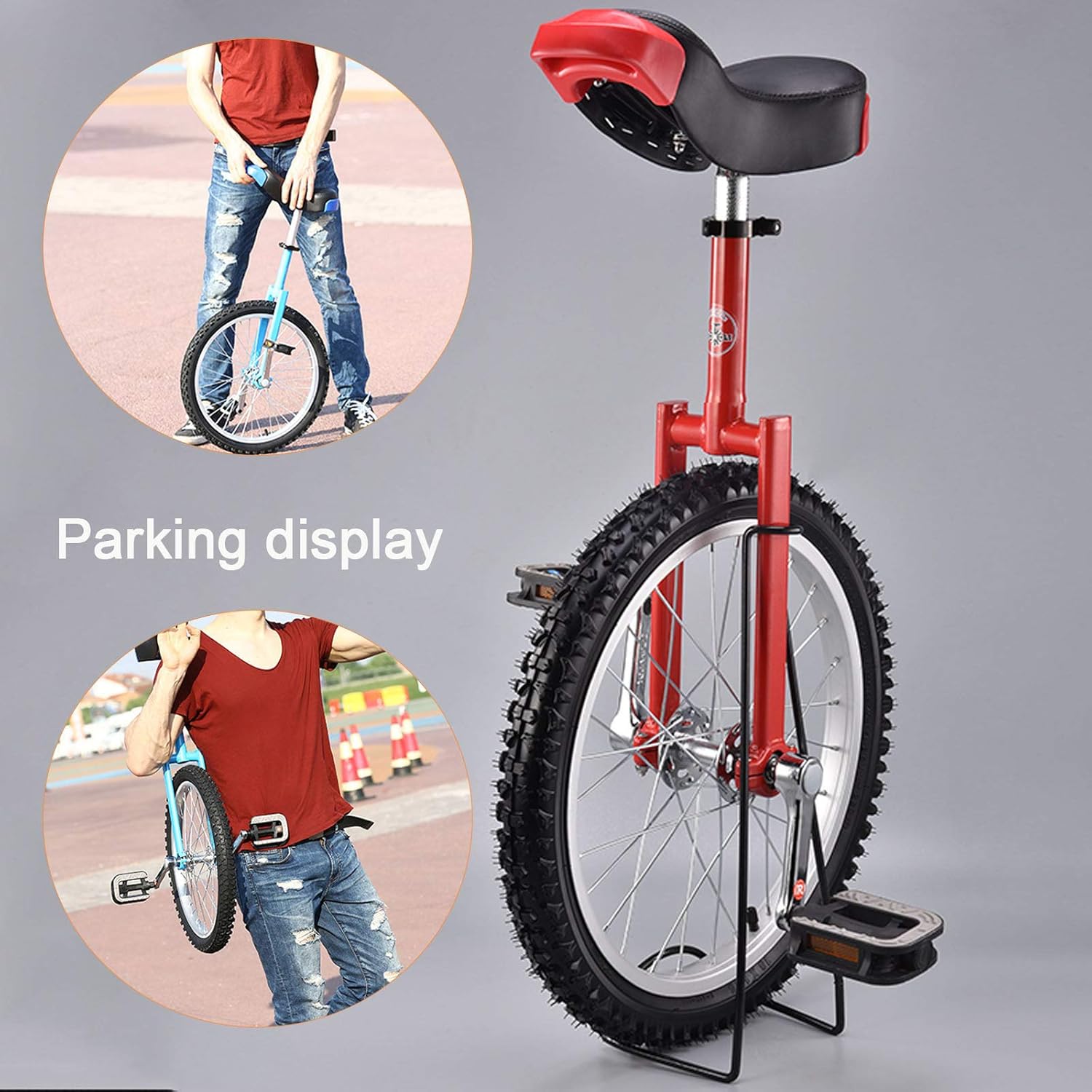 [SELLA STANDARD E CONFORTEVOLE] Parte anteriore alta e fondo spesso, comoda e resistente, design unico dei braccioli anteriori e posteriori, design ergonomico, morbido e confortevole; modellatura una tantum senza giunzioni, non facile da indossare; presa comoda, guida più sicura; Estendere l'asta di regolazione, il campo di regolazione è ampio. [ROBUSTO E DUREVOLE] Il monociclo ha un robusto telaio in acciaio al manganese. I bordi in lega di alluminio ultra spessi possono essere utilizzati a lungo e i pneumatici interni sono a prova di perdite. Ottimi pneumatici da montagna antiscivolo. Sella grande con ringhiera in poly-nylon rimovibile. [GUIDA SICURA] Ruote di alta qualità/pneumatici larghi/pneumatici spessi garantiscono maggiore controllo e stabilità per evitare di perdere l'equilibrio in caso di collisioni e rotture sulla strada. Il design antiscivolo di pedali e ruote offre una doppia protezione. [Forcella a spalla piatta standard internazionale] È raffinata in acciaio al manganese ad alta resistenza e saldata con squame di pesce; eccellenti prestazioni di tenuta, resistenza alla corrosione; progettazione meccanica perfetta, forte e compresso Il monociclo allena l'equilibrio, la concentrazione e la velocità di reazione, favorisce lo sviluppo del cervelletto e del cervello e migliora la circolazione cardio-polmonare. Un regalo ideale per pendolari, studenti e appassionati di ciclismo.
