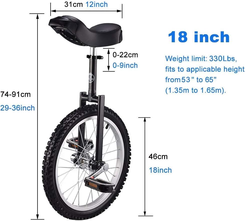 Forniamo ai nostri clienti monocicli di alta qualità, se avete domande, non esitate a contattarci. Nuovissimo monociclo con ruota da 16/18/20 pollici con design ergonomico e massima qualità, questo è quello che stai cercando! Questo monociclo leggero è facile da installare. Il monociclo viene fornito con un morsetto del reggisella a sgancio rapido e una chiave che può essere installato in pochi minuti ed è pronto per momenti di guida impegnativi ma divertenti. Perfetto per principianti e professionisti, soprattutto per adolescenti, per esercitarsi nell'equitazione e migliorare l'equilibrio. È un regalo divertente, un regalo di Natale, un regalo di compleanno per gli amici. Perfetto per lo sport, l'esercizio fisico e le attività ricreative. Il pneumatico esterno e i pedali impediscono lo scivolamento. La maniglia del sedile è comoda per i principianti durante la guida.