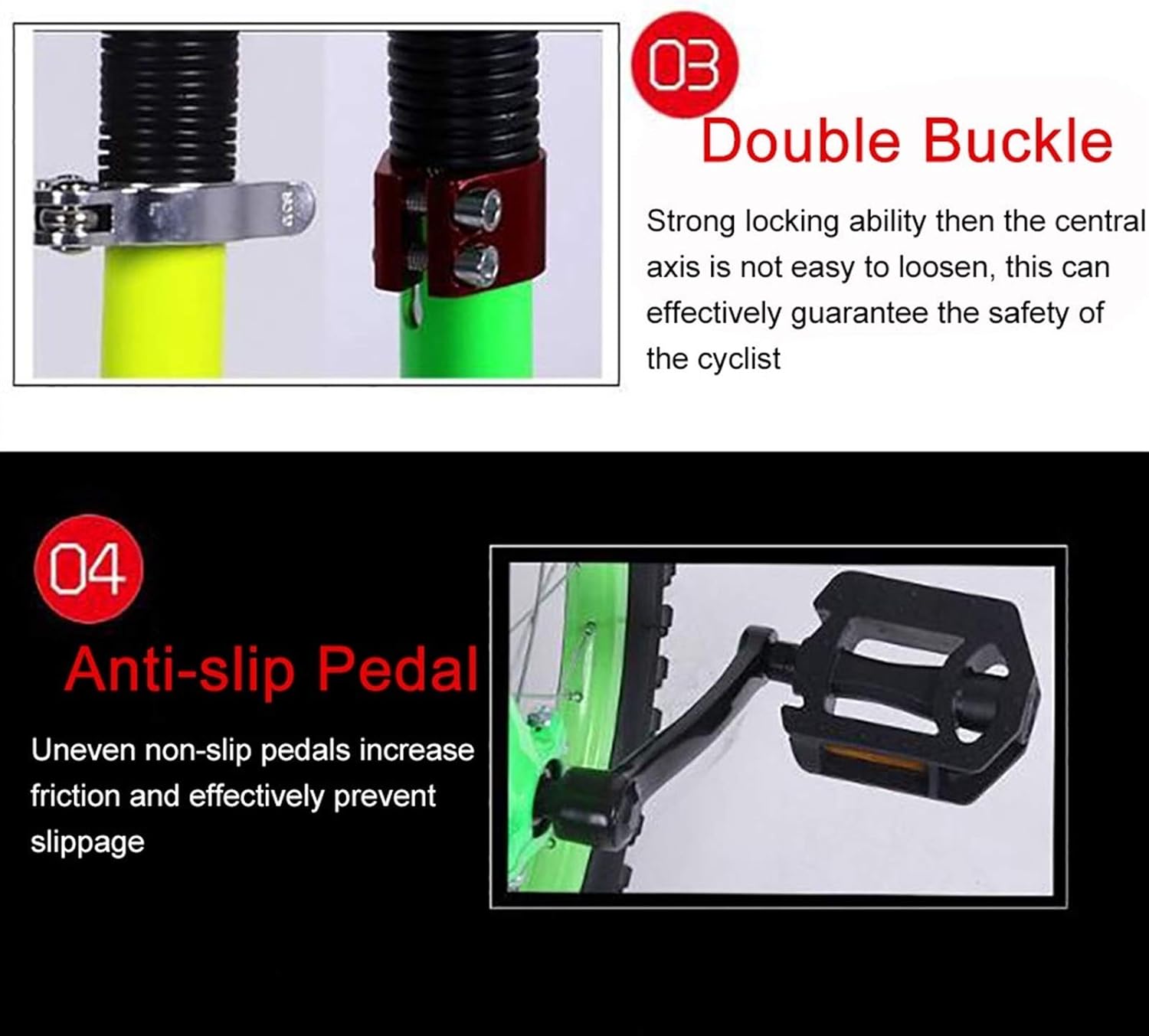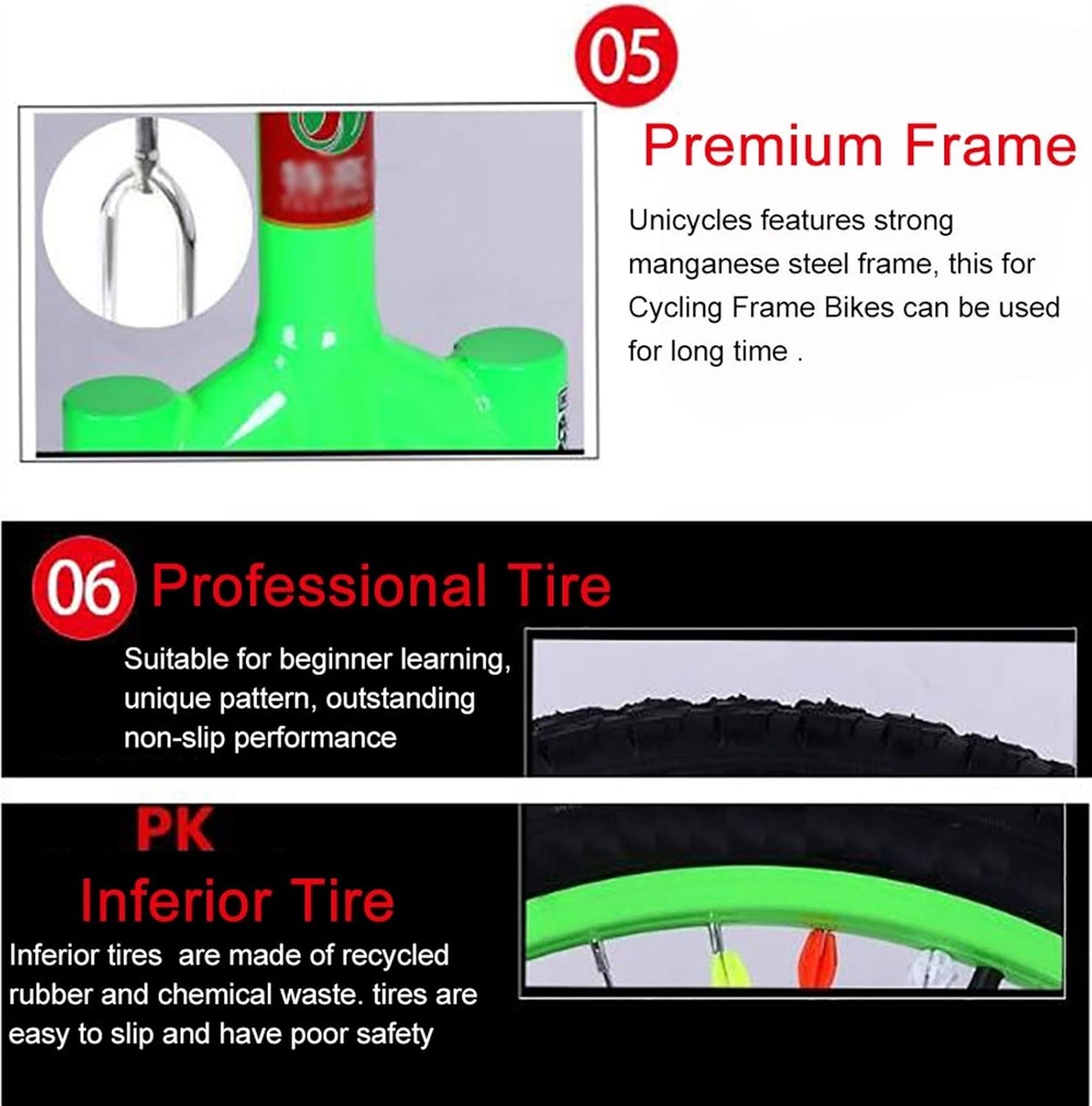 【Monociclo da 16 pollici】: il monociclo con ruota da 16/18/20/24 pollici ha un solido telaio in acciaio al manganese, un carico di 150 kg, un'altezza utente adatta di 120-140 cm (47-55 pollici). 【Design antiscivolo】La ruota offre maggiore controllo e stabilità evitando l'equilibrio in caso di dossi o crepe sulla strada. Design antiscivolo sia sul pedale che sulla ruota per una doppia protezione. 【Adatto alle persone】: ideale per adulti, principianti e professionisti, in particolare per bambini e adolescenti per praticare la guida e migliorare l'equilibrio. Perfetto per attività sportive, di allenamento e di tempo libero. 【Facile da trasportare】: il monociclo è piccolo e facile da riporre. Permette l'ingresso in luoghi pubblici, autobus, treni. Se esperti, di solito è possibile utilizzare un monociclo invece di camminare entro un raggio di 15 km. 【Servizio clienti】: attribuiamo grande importanza all'esperienza del cliente (come venditore onesto e affidabile, la soddisfazione del cliente è il nostro obiettivo) Se hai domande, contattaci così possiamo aiutarti, ti risponderemo 24 ore su 24, 7 giorni su 7. Pochi giorni al vostro servizio in poche ore, siamo felici di servirvi