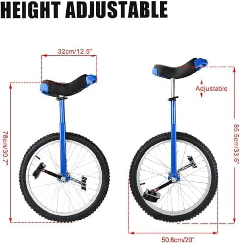 Montaggio senza sforzo con strumenti inclusi: il monociclo è progettato per una facile installazione, dotato di un morsetto reggisella a sgancio rapido e una pratica chiave, che lo rende semplice per i ciclisti di tutti i livelli di esperienza per iniziare. Costruito per durare a lungo con materiali di alta qualità: costruito con cerchi in lega di alluminio extra spessi e un robusto telaio in acciaio al manganese, questo monociclo promette una durata eccezionale e prestazioni di lunga durata. Diverse opzioni di dimensioni per ogni pilota: disponibile nei modelli da 16, 18, 20 e 24 pollici, può ospitare piloti che vanno da 120 cm a oltre 175 cm, garantendo una vestibilità ideale per tutti. Guida fluida e piacevole: dotato di cuscinetti a cartuccia per pedalare senza sforzo e di una comoda sella abbinata a un morsetto reggisella a sgancio rapido, questo monociclo migliora la tua esperienza di guida. Perfetto per i ciclisti di tutte le abilità: sia che tu abbia appena iniziato o che abbia anni di esperienza, il telaio resistente del monociclo, i pneumatici a doppio strato e il sedile regolabile lo rendono un'ottima scelta per tutti.