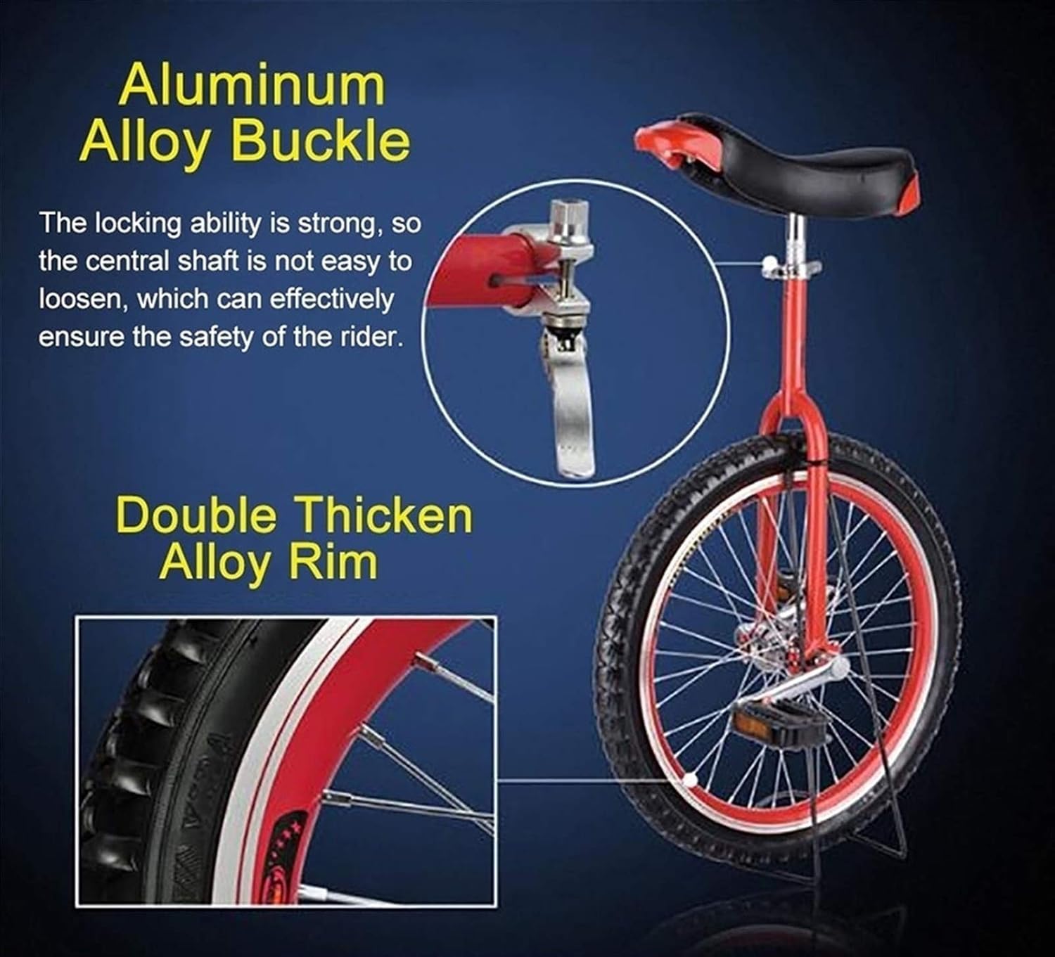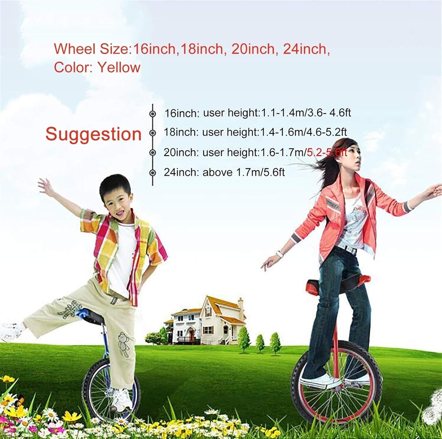 【Vantaggio】 Il monociclo combina emozionante, pericoloso e bello. Arricchisce la vita delle persone e svolge un ottimo ruolo nella cultura della personalità positiva, fiduciosa, ferma e intraprendente di una persona. 【Monociclo da 16/18/20/24 pollici】: Il monociclo con ruote è dotato di un solido telaio in acciaio al manganese, un carico di 150 kg, un'altezza utente adatta: 16 pollici: 1,1-1,4 m/3,64,6 piedi; 18 pollici: 1,4-1,6 m/4,6 m. -5,2 - 5 piedi; 20 pollici: 1,6-1,7 m/5,2-5,6 piedi; 24 pollici: oltre 1,7 m/5,6 piedi. 【Sella comoda】: sedile reclinabile regolabile: design ergonomico, morbido e confortevole. La sella con maniglia può bilanciare il baricentro per una guida sicura e confortevole. 【Design antiscivolo】La ruota offre maggiore controllo e stabilità evitando l'equilibrio in caso di dossi o crepe sulla strada. Design antiscivolo sia sul pedale che sulla ruota per una doppia protezione. 【Servizio clienti】: attribuiamo grande importanza all'esperienza del cliente (come venditore onesto e affidabile, la soddisfazione del cliente è il nostro obiettivo) Se hai domande, contattaci così possiamo aiutarti, ti risponderemo 24 ore su 24, 7 giorni su 7. Pochi giorni al vostro servizio in poche ore, siamo felici di servirvi