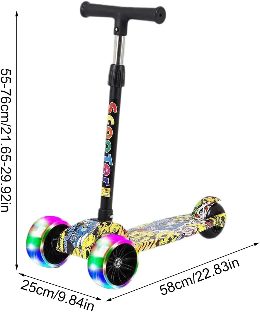 Basso a : questo monopattino per bambini è dotato di un ponte antiscivolo progettato specificamente per i bambini, che lo rende sicuro e facile da maneggiare anche per i ciclisti più piccoli. Il design ribassato consente al tuo bambino di e scendere facilmente, garantendo la massima stabilità e sicurezza durante ogni viaggio Aggiungi divertimento scooter: goditi il fantastico scivolo con questo scooter per bambini dotato di una ruota flash LED che si illumina automaticamente con la velocità, aumentando il divertimento sullo scooter senza la necessità di una batteria aggiuntiva di piegatura: goditi un viaggio confortevole con questo monopattino per bambini con di piegatura rapida. La sua leggera maniglia in alluminio a forma di T e la struttura del ponte lo rendono facile da riporre e trasportare, perfetto per le famiglie all'aperto Guida : grazie al di frenatura della ruota posteriore e all'impugnatura morbida, questo monopattino per bambini garantisce corse completamente stabili su diversi terreni, consentendo ai bambini di scivolare dolcemente e in sicurezza su qualsiasi strada Design multi-regolazione: promuovi la crescita del tuo bambino con scooter per bambini regolabile che si adatta alle sue esigenze da 55 cm a 76 cm e ad un peso fino a 50 kg. Perfetto per bambini dai 3 ai 12 anni. Il partner ideale per un'infanzia impegnata e attiva