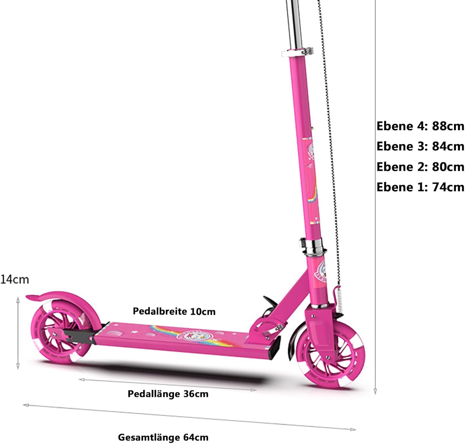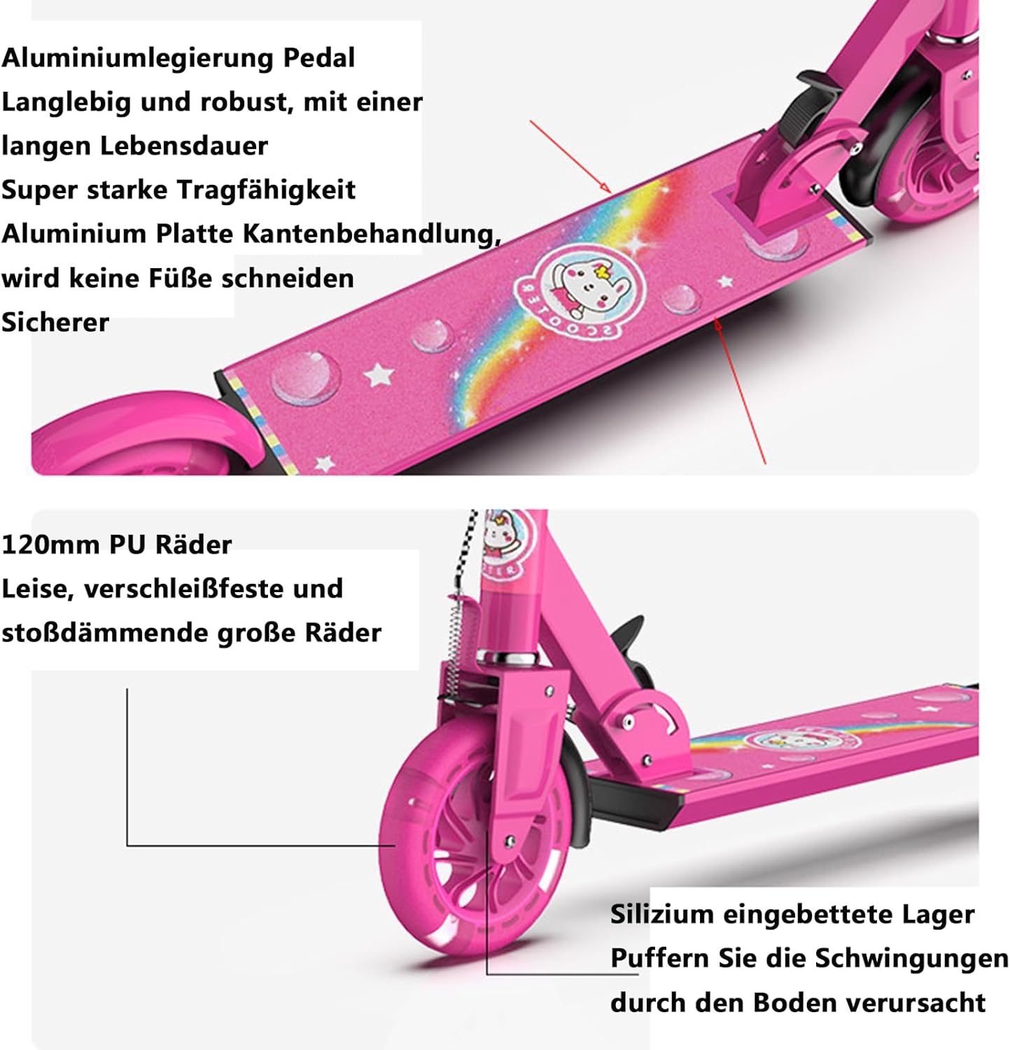 【Ruote con luci a LED attraenti】 Le ruote del nostro monopattino sono dotate di luci a LED integrate che aiuteranno il tuo bambino a distinguersi dalla massa. Lo scooter ha un sensore di movimento integrato che accende le luci non appena inizi a guidare. Le ruote da 20 cm consentono una guida fluida e aiutano i bambini ad allenare le proprie capacità di equilibrio in condizioni di sicurezza. 【Altezza del manubrio regolabile in 3 direzioni】 Il manubrio di questo monopattino sportivo può essere regolato su tre diverse altezze, in modo che i bambini di diverse altezze possano facilmente utilizzare lo scooter. Inoltre, il manubrio è ricoperto da una morbida schiuma che protegge le mani del tuo bambino e può assorbire l'umidità. 【Realizzato in lega di alluminio di alta qualità】 Il nostro scooter pieghevole è realizzato in robusta lega di alluminio ed è sufficientemente stabile da supportare un peso fino a 100 kg. È adatto a bambini e adolescenti dai 2 ai 10 anni che possono guidare il nostro scooter senza preoccuparsi della sua qualità. 【Meccanismo di piegatura rapida】Questo monopattino può essere piegato molto facilmente in pochi secondi, in modo che i tuoi bambini possano eseguire questo processo di montaggio e smontaggio in modo completamente indipendente. Una volta piegato, lo scooter è abbastanza compatto da poter essere riposto facilmente ovunque. 【Design leggero per un facile trasporto】 Il nostro scooter ha un peso estremamente ridotto di soli 2,5 kg e può trasportare fino a 100 kg contemporaneamente. Questo lo rende ideale per la maggior parte delle ragazze e dei ragazzi e sarebbe il regalo perfetto per il loro prossimo compleanno. Grazie alle pratiche cinghie di trasporto, i tuoi bambini potranno portare facilmente con sé il monopattino e portarlo nei luoghi di allenamento o agli incontri con gli amici.