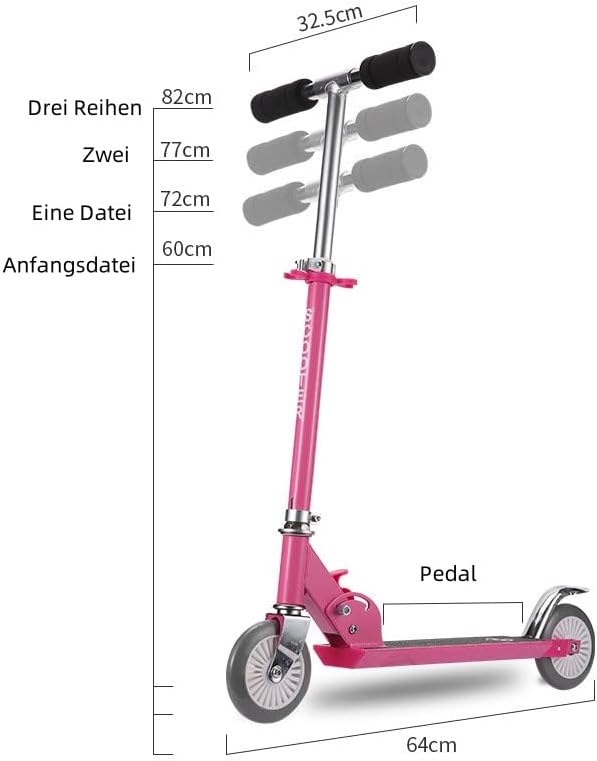 Regolazione e idoneità all'età: Manubrio regolabile in altezza per bambini in crescita: Tre altezze del manubrio regolabili in continuo (72/77/82 cm) consentono una vestibilità perfetta per bambini da circa 3 anni a circa 12 anni. Accompagna idealmente il tuo bambino nel corso degli anni Sicurezza al centro: caratteristiche di sicurezza affidabili: il manubrio imbottito e antiscivolo e un efficace freno a pedale posteriore garantiscono un buon controllo e una frenata sicura. Il robusto telaio interamente in alluminio garantisce stabilità e longevità. Esperienza di guida fluida e silenziosa: corsa comoda e silenziosa: le ruote in PU da 120 mm di alta qualità con cuscinetti di precisione ABEC-7 offrono uno scorrimento fluido e sorprendentemente silenzioso e una buona sospensione. Il generoso freno a pedale in alluminio garantisce tenuta salda e comfort. Maneggevolezza e trasporto: Pieghevole rapidamente e facile da trasportare: Pratico sistema di chiusura rapida con meccanismo di sicurezza per una facile piegatura in pochi secondi. Grazie alle sue dimensioni compatte di piegatura e al peso leggero di soli 1,98 kg, lo scooter può essere riposto in modo salvaspazio ed è facile da trasportare per i bambini. Stabilità e versatilità: piacere di guida stabile e versatile: il telaio in alluminio sicuro e stabile e le grandi ruote con angolo di sterzata di 180° offrono un ottimo controllo e stabilità di guida, anche su superfici lisce. Con una capacità di carico di 50 kg, lo scooter è ideale per bambini, giovani e per i luoghi più diversi