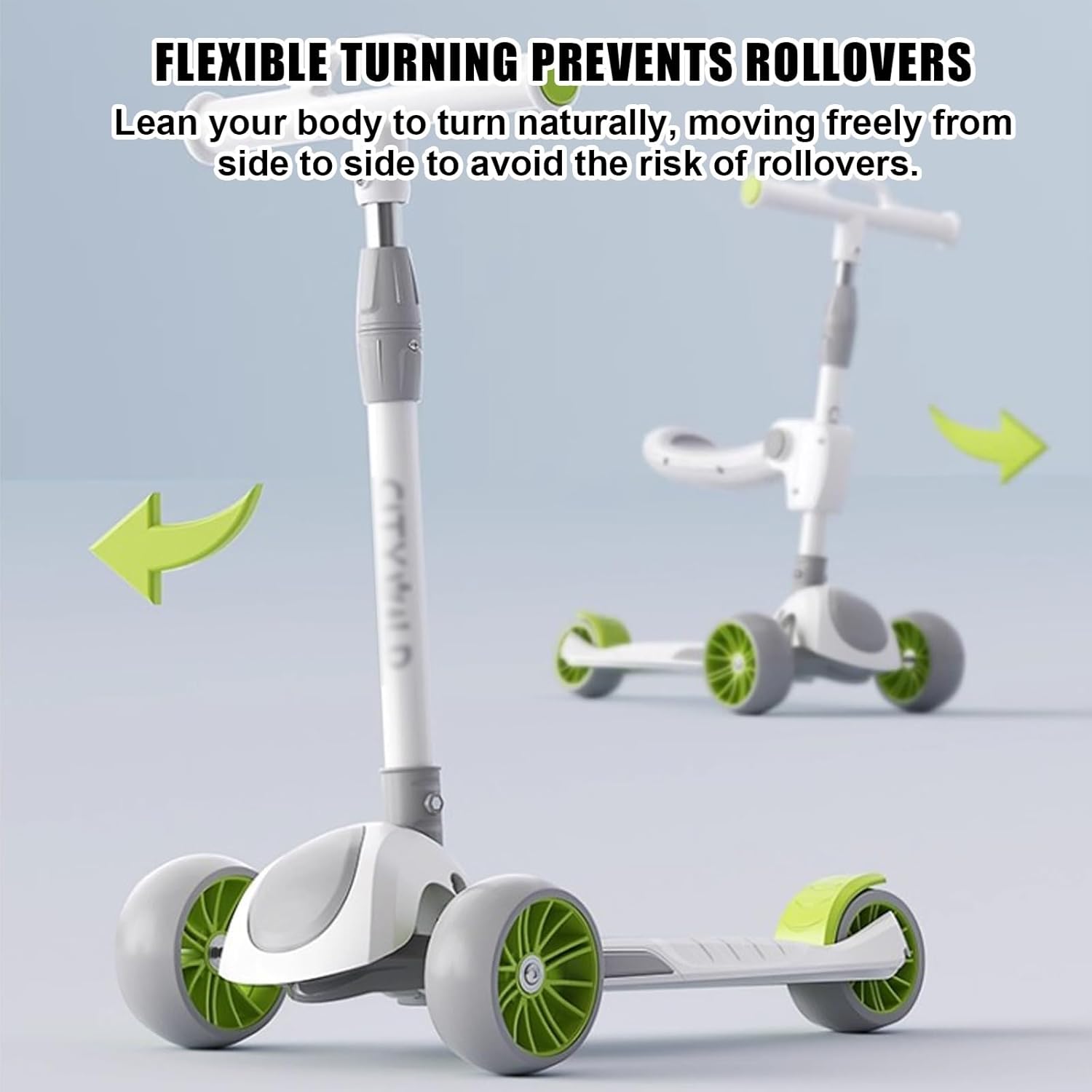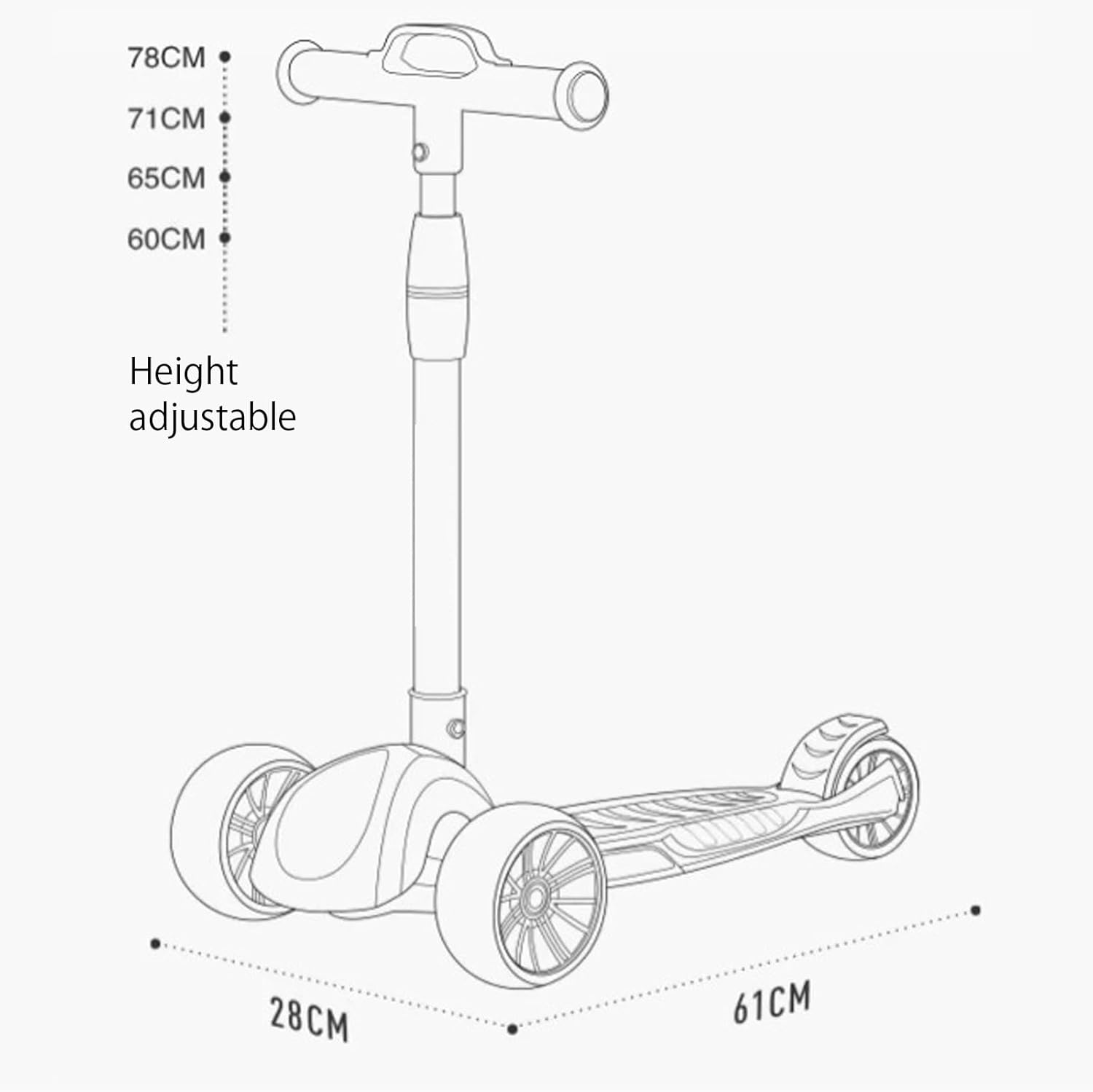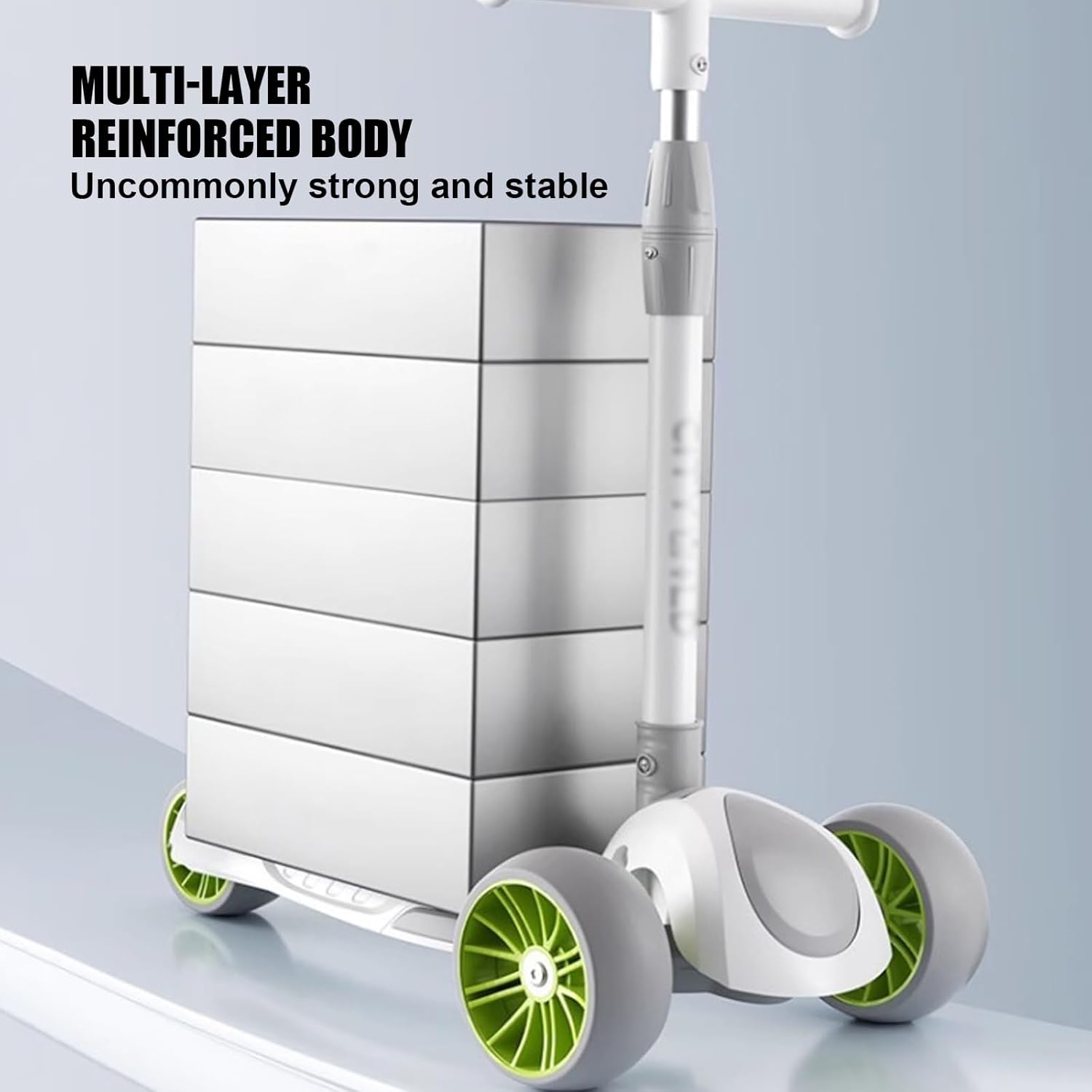 MONOPATTINO PIEGHEVOLE for BAMBINI: Il manubrio di questo monopattino di grandi dimensioni è regolabile a diverse altezze, adatto a bambini di altezza compresa tra 70 e 150 cm. Accompagna i bambini dall'apprendimento precoce all'età scolare, eliminando la necessità di frequenti cambi di veicolo. RUOTE ILLUMINATE: Sia le ruote anteriori che quelle posteriori sono dotate di illuminazione integrata che si illumina automaticamente in diversi colori durante la guida. Questo non solo migliora la visibilità notturna e previene le collisioni, ma stimola anche l'interesse dei bambini for la guida. MONOPATTINO A 3 RUOTE: Questo monopattino pieghevole for bambini è dotato di un design a tre ruote, due anteriori e una posteriore, che garantisce un baricentro basso e un equilibrio eccellente, rendendolo meno soggetto a ribaltamento anche for i principianti. Le ruote scorrono fluidamente, rendendolo stabile su una varietà di superfici, dalle aree residenziali ai parchi. SICURO E DUREVOLE: i bordi arrotondati dello scooter eliminano gli spigoli vivi, prevenendo efficacemente i graffi. Il telaio ad alta resistenza è durevole e resistente agli urti, garantendo sicurezza e durata, dando tranquillità ai genitori. ASPETTO ELEGANTE: Questo monopattino è disponibile in una varietà di colori, tra cui bianco, blu, rosa e verde. I colori vivaci si adattano a diversi generi e preferenze personali, incoraggiando i bambini a divertirsi guidandolo.