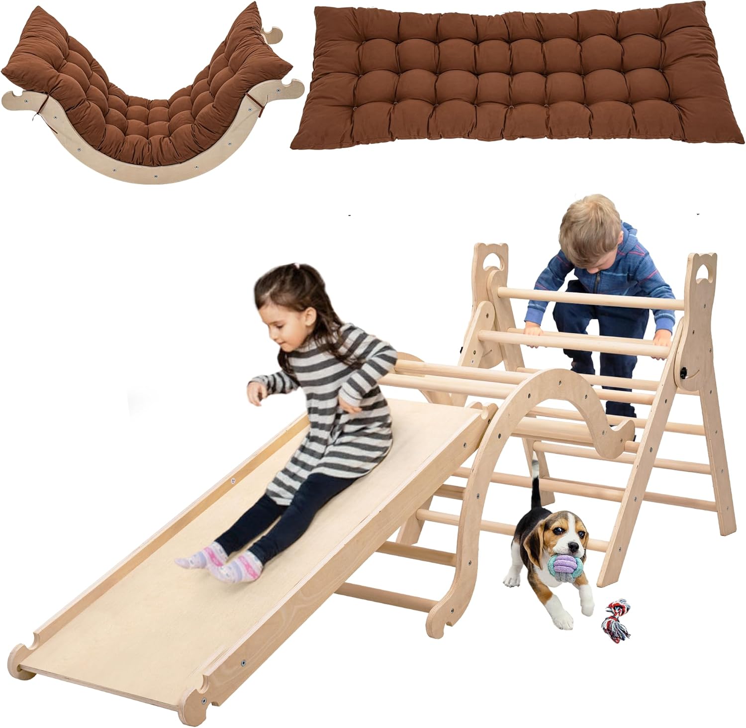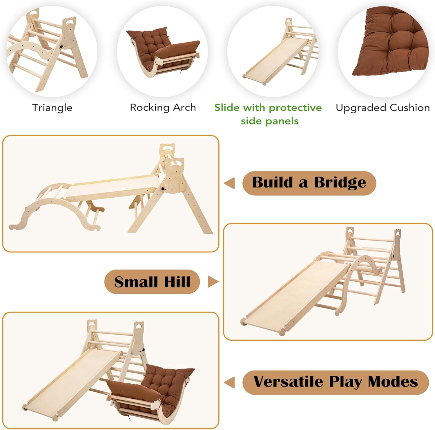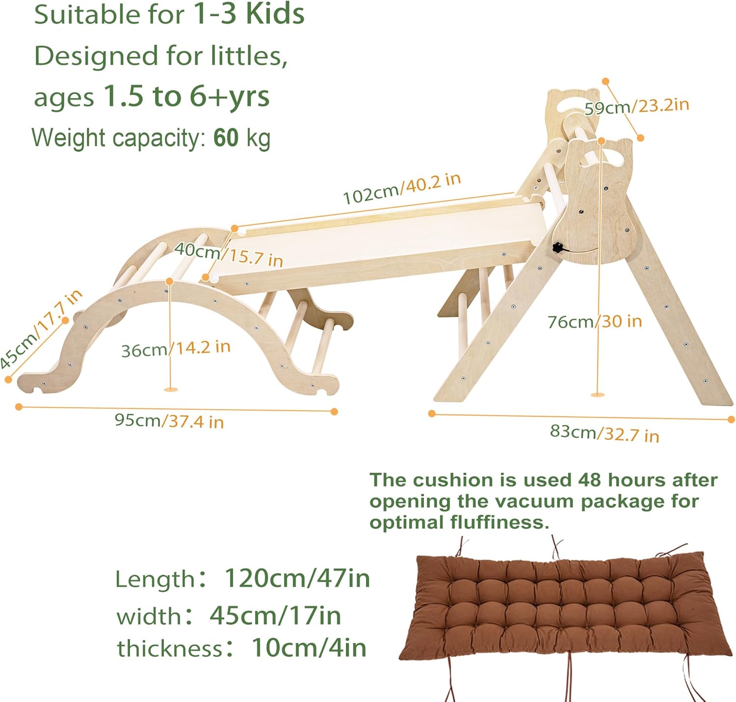 【Legno sicuro e naturale】 Certificato secondo gli standard ASTM e CPSC. Realizzato con materiali naturali al 100%, certificati FSC. Tutti i pezzi sono realizzati in legno naturale, atossico e inodore. Ecco perché le nostre strutture montessori non causano reazioni allergiche e non rilasciano sostanze nocive. Inoltre, gli angoli e i bordi della scala sono abbastanza lisci da evitare che i bambini si feriscano durante il gioco (Nota: vi preghiamo di contattarci via e-mail. In caso di problemi di lavorazione o difetti del prodotto, puoi raggiungerci rapidamente solo qui e risolvere i problemi!) Versatili possibilità di gioco: la struttura da arrampicata per interni comprende un triangolo da arrampicata, uno scivolo, un arco e un cuscino ad arco. La tavola antiscivolo è progettata con due lati che possono essere utilizzati come tavola da arrampicata e tavola antiscivolo. Il prodotto può diventare un castello, un garage per auto, un tepee o qualsiasi altra cosa evochi la loro immaginazione. Che è stato creato per sviluppare i muscoli, l'equilibrio, il coraggio di un bambino Facile da piegare e riporre: il nostro triangolo da arrampicata con scivolo è pieghevole e facile da riporre, con due bottoni sulla parte superiore per una facile piegatura. Un adulto può installarlo in 40-60 minuti. Nota: non stringere le viti. Stringere le viti solo dopo aver completato l'installazione totale Regalo perfetto: il nostro set per parco giochi è il regalo perfetto come regalo di compleanno, Natale, San Valentino, regali divertenti di Pasqua per bambini e bambini e offre ore di divertimento e sviluppo naturale. parco giochi al coperto offre ai bambini piccoli e in età prescolare un'importante opportunità di sviluppo e giochi Servizio clienti affidabile: il nostro obiettivo principale è la soddisfazione del cliente. Oltre alla cura per i prodotti di altissima qualità, ci impegniamo a garantire che ogni cliente sia soddisfatto dell'esperienza di acquisto. Contatta il nostro team di assistenza Amazon: accedi al tuo account Amazon > seleziona "I tuoi ordini" > trova l'ID ordine > clicca su "Contatta il venditore"