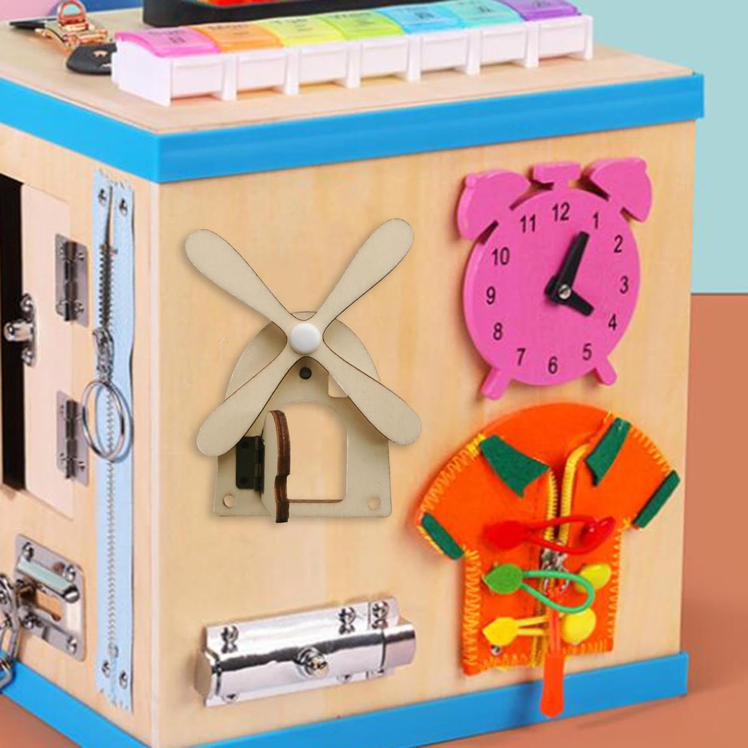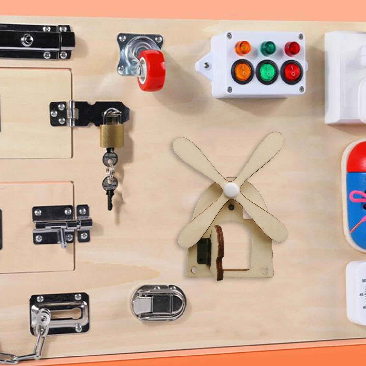 【Belli regali】: giocattolo sensoriale da tavolo occupato, regalo perfetto di compleanno/vacanza per bambini, ragazzi dai 4 agli 8 anni. 【Giocattolo versione occupata】: è un accessorio da tavolo occupato fai-da-te per bambini, che promuove l'intelligenza e migliora l'abilità pratica. 【Leggero e portatile】: la Montessori Busy Board è piccola e leggera, quindi può essere perfettamente tenuta e utilizzata da piccole mani, rendendola un giocattolo ideale per sviluppare capacità motorie. 【Materiale durevole】: giocattolo con blocco della scheda sensoriale realizzato in legno di alta qualità, resistente e sicuro, adatto per far giocare i bambini. 【Prodotto】: accessori per serrature fai-da-te per tavoli da lavoro per bambini. I giocattoli sensoriali aiutano i bambini a sviluppare capacità motorie, emozioni, creatività e capacità intellettuali.
