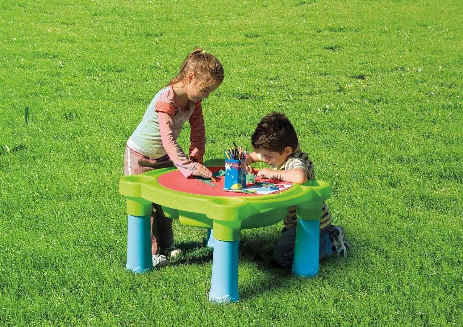 Opzioni di gioco versatili: il nostro tavolo da gioco con sabbia e acqua per bambini garantisce ore di divertimento e creatività. Con i due scomparti i bambini potranno esplorare le meraviglie del gioco con sabbia e acqua in un pratico tavolo. Due aree di gioco in uno: il design diviso del nostro tavolo da gioco permette di giocare contemporaneamente con sabbia e acqua. I bambini possono costruire castelli di sabbia, creare trincee e scavare nella sabbia, mentre nella zona dell'acqua possono navigare barche, sguazzare ed esplorare la galleggiabilità. PROMUOVE LO SVILUPPO SENSORICO: Il gioco con sabbia e acqua non sono solo divertenti, ma stimola anche l'esplorazione dei sensi e lo sviluppo delle capacità motorie. Creando, versando e scolpendo sabbia e acqua, i bambini migliorano la loro sensazione, la coordinazione occhio-mano e la loro creatività. COMPATTO E PORTATILE: il design del nostro tavolo da gioco è stato pensato alla praticità. Grazie alle sue dimensioni compatte e alla struttura leggera è facile da trasportare e riporre. In questo modo è possibile portare il divertimento durante le gite in famiglia o posizionarlo in piccole zone di gioco. Regalo ideale per i bambini: per compleanno, Natale o semplicemente come regalo a sorpresa, il nostro tavolo da gioco con sabbia e acqua è una scelta eccellente. Combina intrattenimento, istruzione e sviluppo e offre ore di divertimento ai bambini dai 2 anni in su.