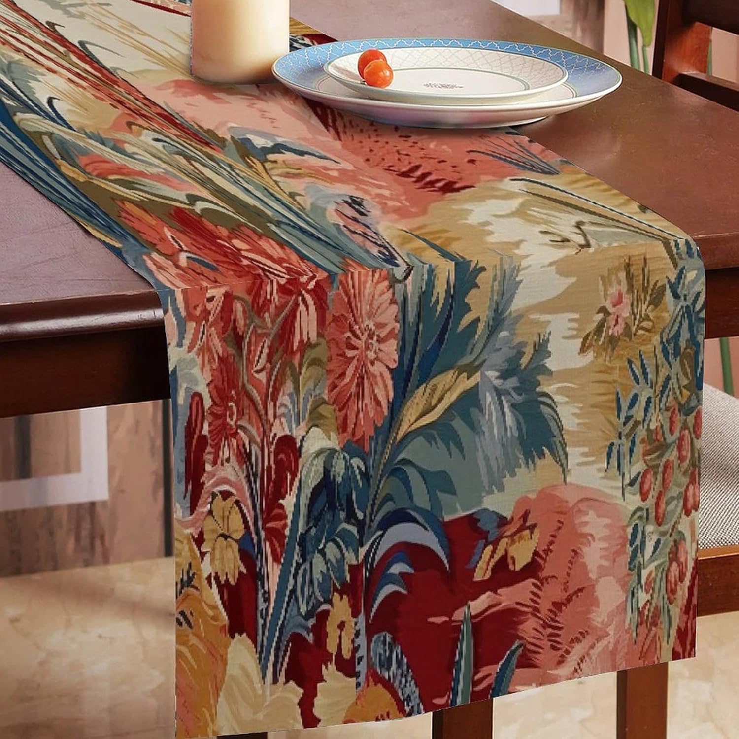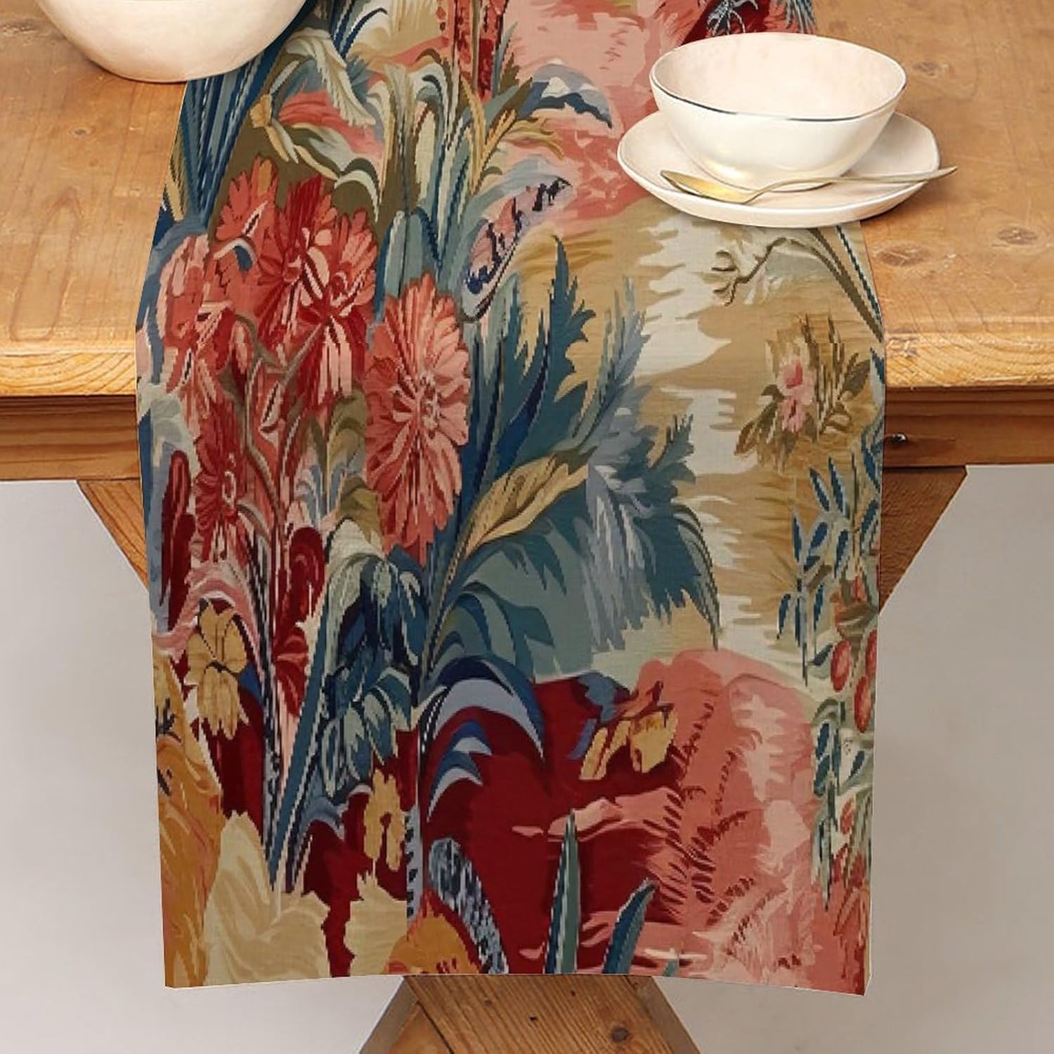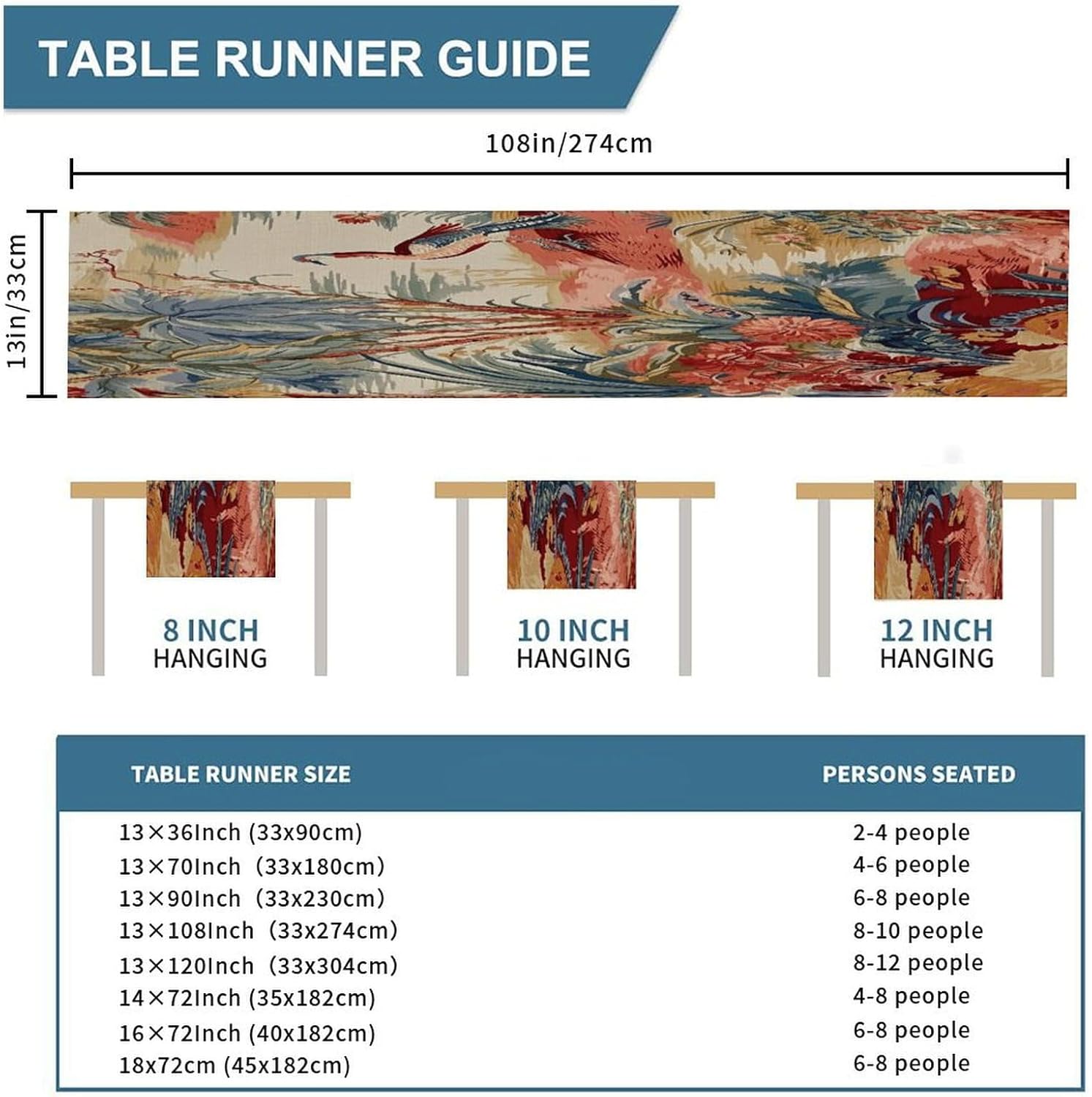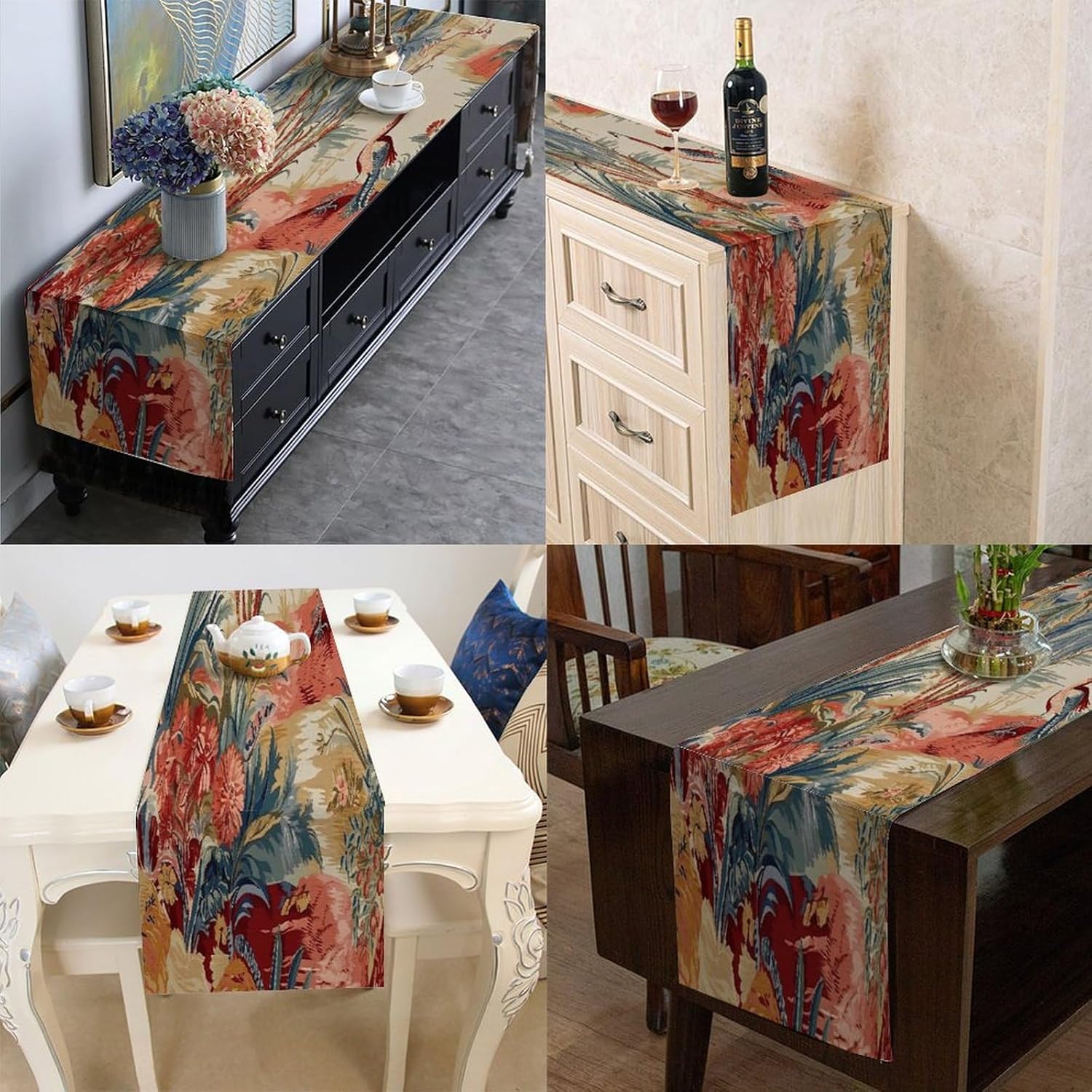 Moore Manor - Runner da tavola in stile antico cineserie, 33 x 274,3 cm, in iuta, rustico, facile da pulire, per soggiorno, cena, casa, tavolo, decorazione per la casa, regalo per la casa