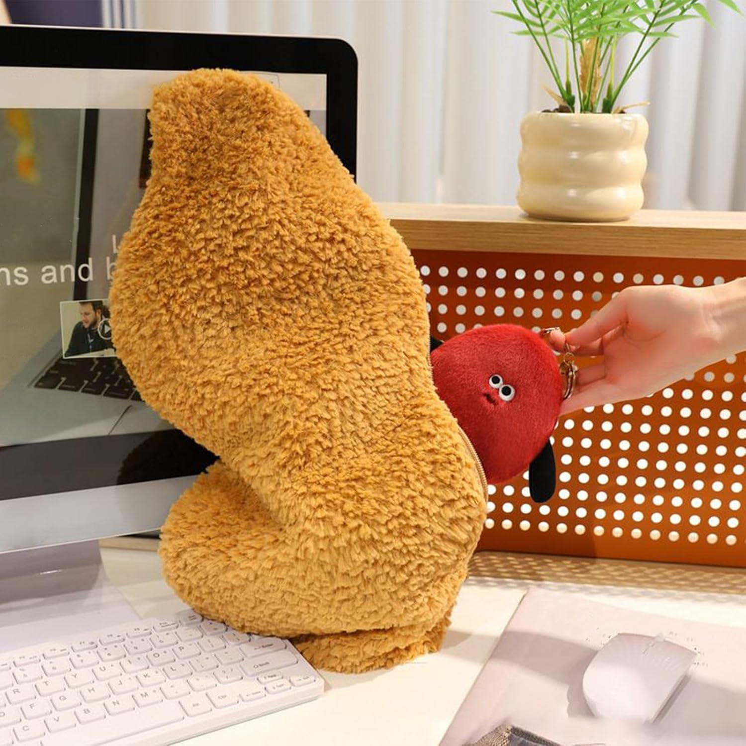 Soluzione Igienica: Tessuto progettato per pulizia immediata con panno umido e lavaggio manuale agevole, assicura risultati impeccabili dopo ogni operazione di igienizzazione Migliora Atmosfera Casa: Questo decorativo aggiunge calore come elemento d'arredo rasserenante diminuendo la solitudine mentre offre comfort e stile per ambienti domestici ideale per creare un'oasi emotiva Supporto Morbido: Materiale in velluto a pelo corto assicura tocco confortevole, mantiene la struttura originale, delicato sul contatto con pelle sensibile e resiste efficacemente scolorimento Stile Giocoso Interattivo: Grazie alla forma ispirata a una noce tridimensionale e ai dettagli ricamati espressivi, questo aggiunge un carattere allegro e unico a qualsiasi spazio della casa. Accessorio 2 in 1: decorativo con pendagli integrati per borse, utilizzabile come comodo sostegno per divani o simpatico pelouche da viaggio. Massima versatilità per esigenze quotidiane tra casa e spostamenti.