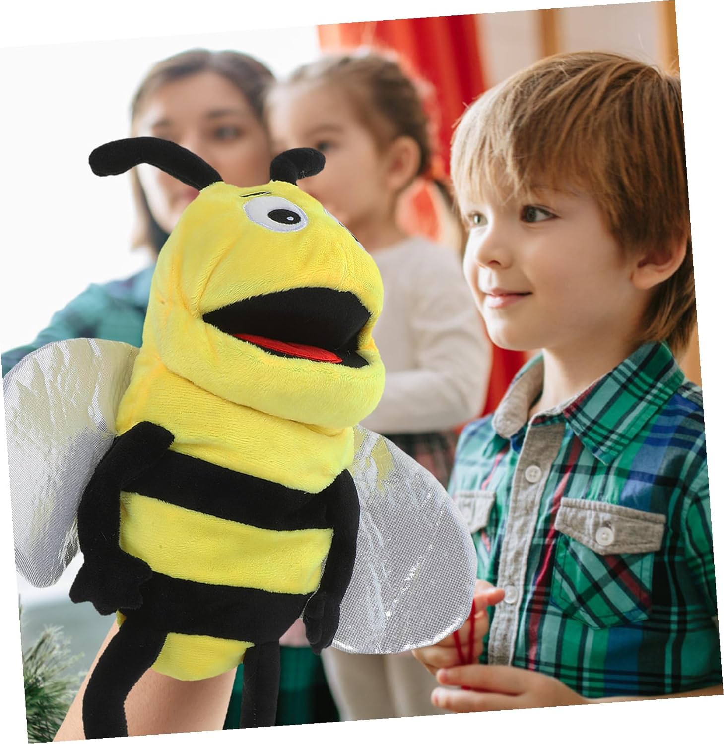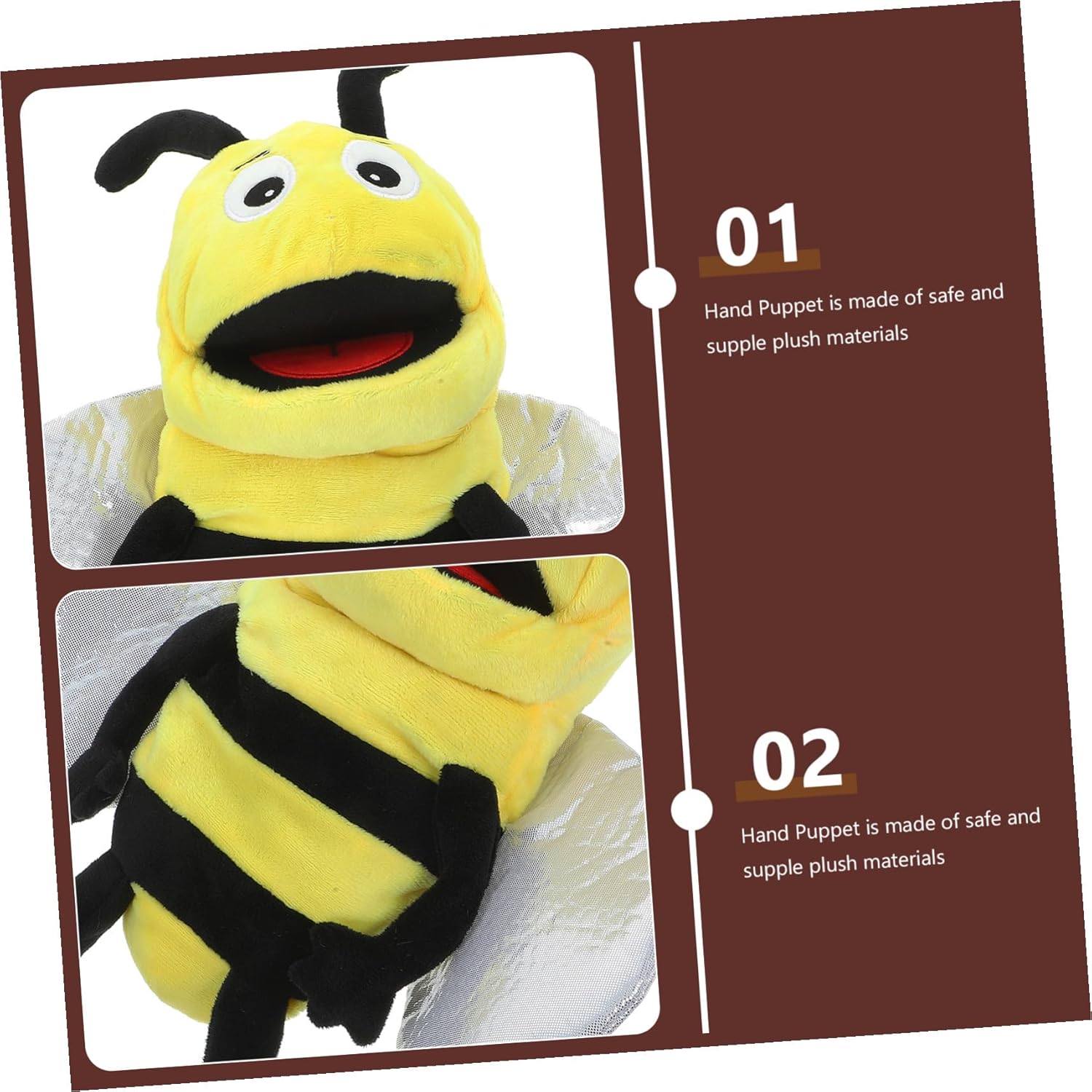 Marionette a forma di animale che raccontano i ruoli: questa marionetta a mano a forma di ape dei cartoni animati aiuta a stimolare la creatività e la comprensione del tuo bambino, marionetta a dito con animali. burattino da dito: burattino a mano dei cartoni animati, puoi farlo quando lo porti in mano, che è un supporto necessario per la narrazione, burattini a mano di famiglia