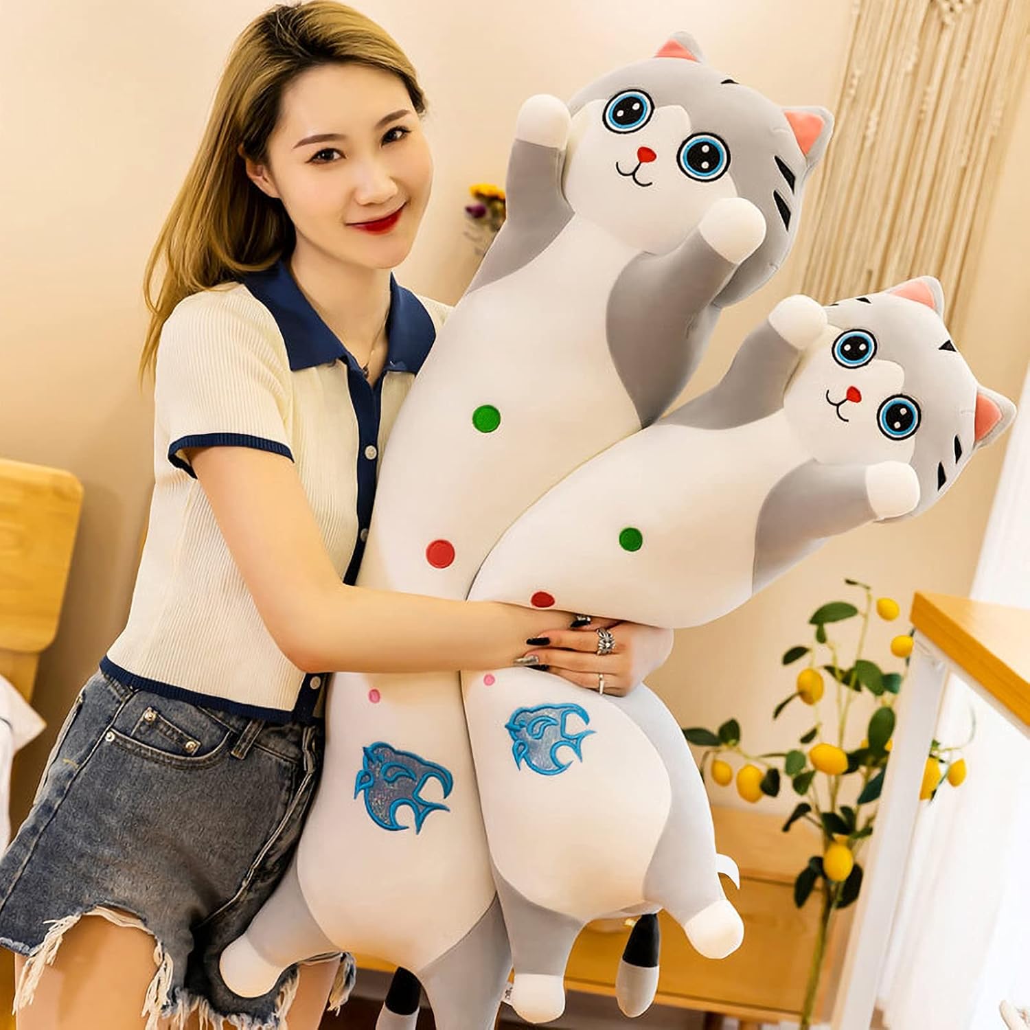 [Utile] Perfetto per applicazioni di sedia, divano, auto, decorazione del sedile della federa. Aggiungi un po' di divertimento e comfort alla tua vita. [Alta qualità] Il simpatico cuscino avvolgente è realizzato con materiali di alta qualità realizzati che sono comodi, traspiranti e non hanno odore. [Pratico] Puoi scegliere questo simpatico peluche per esprimere la tua preoccupazione per la tua ragazza, bambino o amico. Ottimo regalo: il cuscino lungo in peluche è anche un ottimo regalo per le tue adorabili amiche o i tuoi bambini carini per il loro compleanno o altri festival, vacanze. [Ampiamente applicabile] Quasi ogni ragazza/bambino adorerà un giocattolo morbido, anche un bambino avrà bisogno di un cuscino morbido quando vuole riposare.