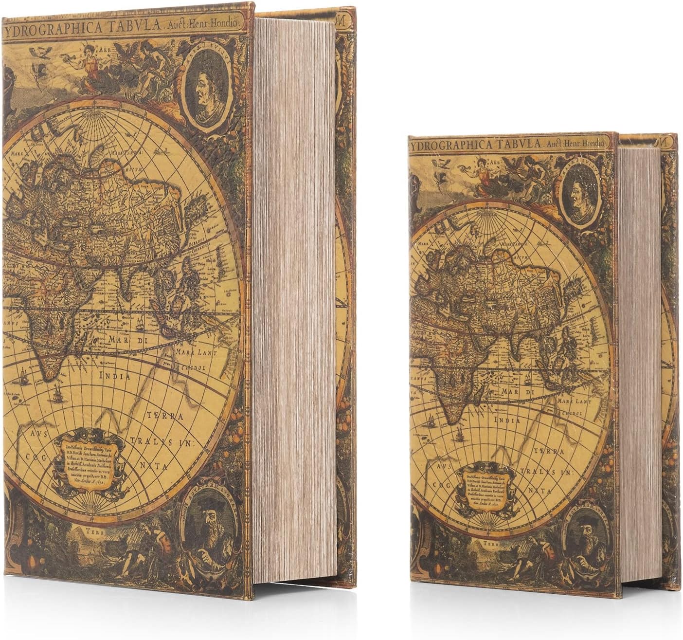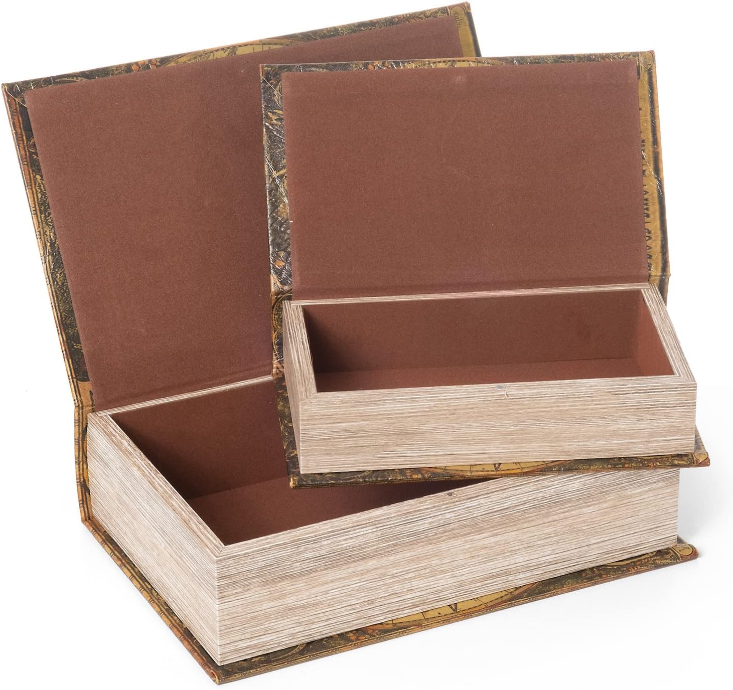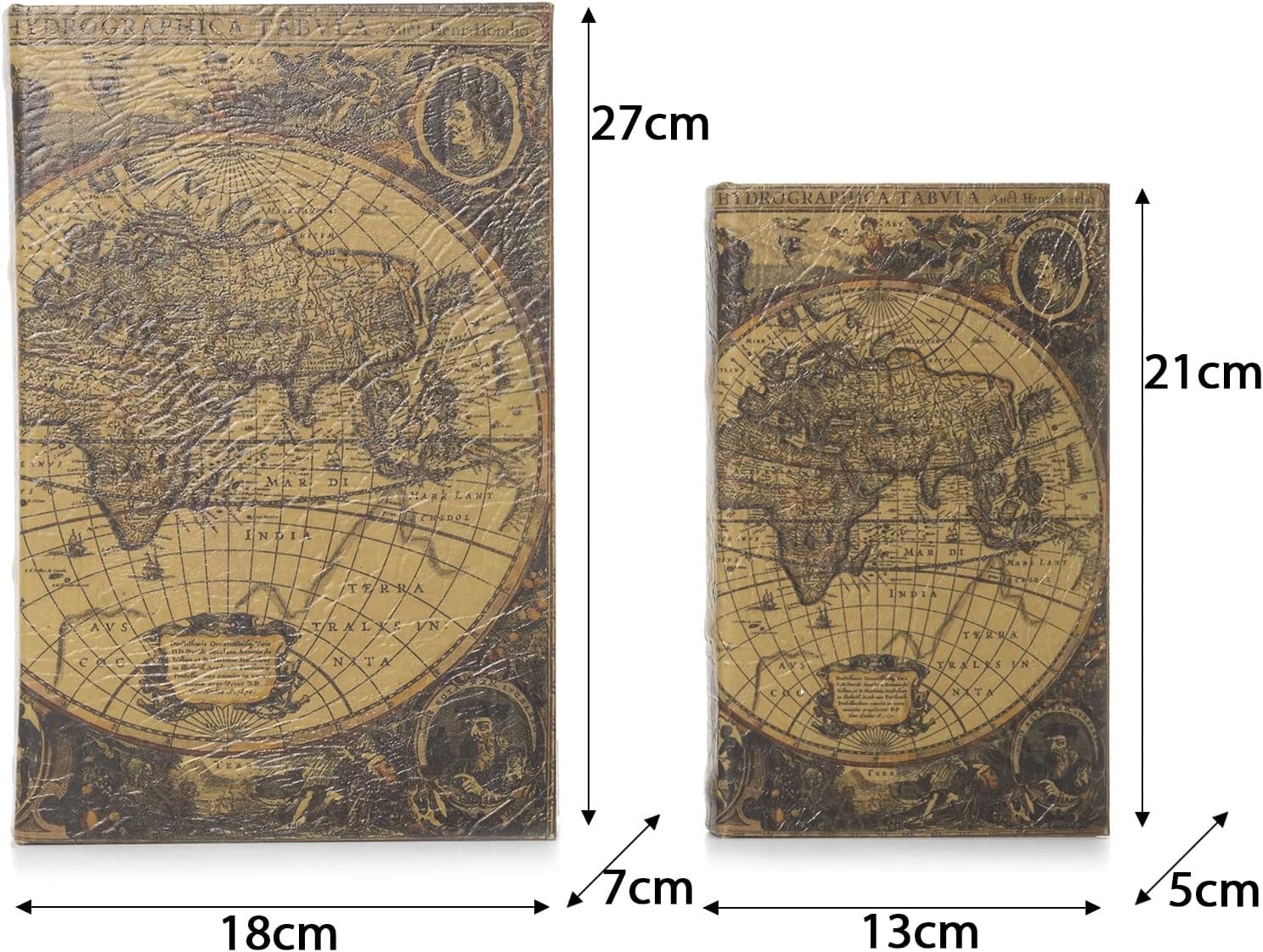Scatola portaoggetti retrò con doppio scopo - Scomparto segreto - Che sia per soldi, decorazioni, portagioielli e molte altre possibilità, hai questa scatola in formato libro Fantastico portagioie decorativo con l'aspetto di un libro - Scomparto elegante per riporre foto, soldi o gioielli Regala qualcosa di eccezionale - Ottima idea regalo per la famiglia e gli amici - Per molte occasioni come compleanni, matrimoni, Natale, Pasqua o semplicemente come piccola attenzione Look antico per un ambiente fantastico - Completa l'arredamento della tua casa con questa copertina decorativa unica per libri dal look vintage Dimensioni: Libro grande: ca. 18 x 27 x 7 cm (L x A x L) - Libro piccolo: ca. 13 x 21 x 5 cm (L x A x L)