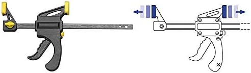 Morsetto a serraggio rapido con una sola mano, grande morsetto ad espansione per modellismo ferroviario, modellismo, diorama, hobby e officina. 1x morsetto a serraggio rapido con ganasce protettive. Le mascelle possono essere cambiate per l'espansione. Profondità di serraggio 30 mm, larghezza di serraggio 200 mm. Larghezza di spargimento 235 mm