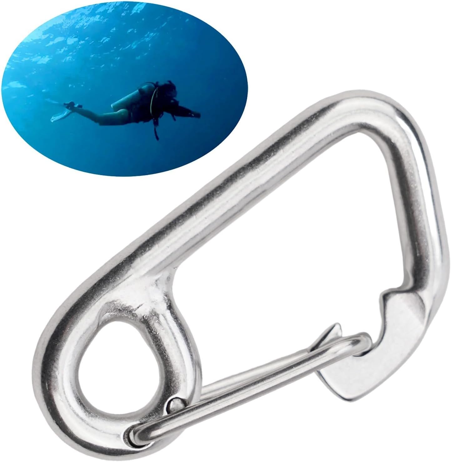 Struttura in acciaio inossidabile di grado marino: realizzato in acciaio inossidabile 316 che offre un'eccezionale resistenza all'erosione e prestazioni di lunga durata in ambienti di acqua salata, perfetto per immersioni subacquee e attività di snorkeling Soluzione completa con fibbia subacquea: progettata con un meccanismo a moschettone sicuro per un facile fissaggio a BCD e cinture di carico, fornendo una gestione affidabile dell'attrezzatura mentre sott'acqua o durante le avventure in campeggio Design compatto e leggero: pesa solo 40 g con dimensioni di 60 mm, questa fibbia subacquea è portatile e facile da trasportare senza aggiungere ingombro alle tue attrezzature subacquee o all'aperto Versatile applicazione esterna: adatto per varie attività tra cui kayak, canottaggio e campeggio, serve come gancio affidabile per organizzare strumenti corde e altri attrezzi essenziali Chiusura affidabile e sicura: presenta un design semplice ma efficace del gancio che fornisce connessioni sicure aiutando a evitare sganciamenti accidentali e garantire la sicurezza degli attrezzi durante gli sport acquatici