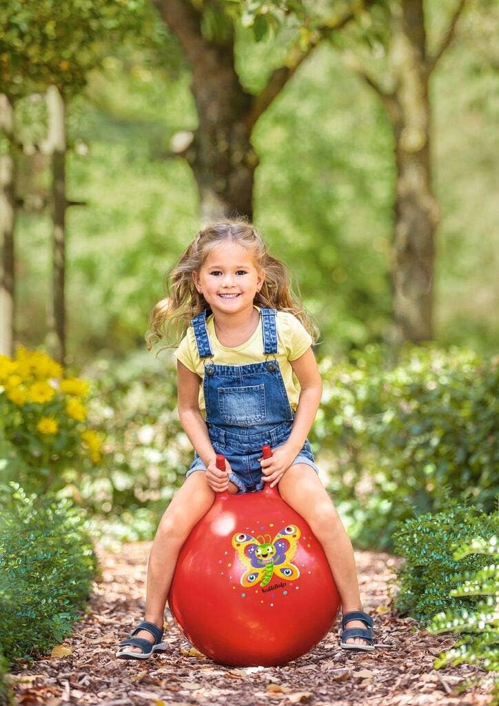 Adatto ai bambini. ✓ La stampa colorata della palla di gomma a forma di farfalla amorevole entusiasma già i più piccoli a partire dai 4 anni e invita a correre e saltare Facilissima ✓ La palla per saltare realizzata in plastica robusta è facilmente gonfiabile con una pompa a piedi, a mano o elettrica e il divertimento può poi iniziare in un attimo Gioco per bambini ✓ rimbalzando e saltando sulla palla Hopper si allena la costruzione muscolare dei bambini e allenando la coordinazione, l'equilibrio e l'equilibrio Compleanno per bambini. ✓ La consegna di questo fantastico giocattolo per interni ed esterni avviene in una bella scatola regalo ed è ideale anche come regalo per compleanni, Pasqua o Natale Sicura per i bambini. ✓ Le piccole scanalature sulle maniglie della palla per saltare garantiscono una presa ottimale durante il salto e impediscono così efficacemente al bambino di scivolare dalla palla. Dimensioni da gonfiato: circa Ø 45 cm, carico massimo circa 80 kg