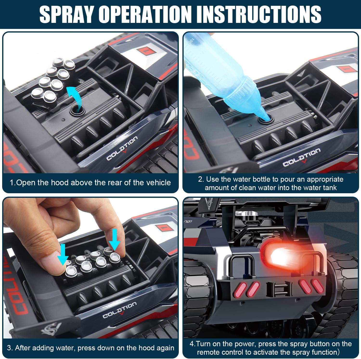 Funzionamento con telecomando: questo telecomando auto è azionato a distanza da un telecomando senza fili con una distanza di circa 80 metri. Può controllare in modo flessibile ogni azione di questo serbatoio telecomandato. Che si tratti di avanti, indietro, girando o anteriore e posteriore Testa inclinabile acrobazie azione, rc auto possono essere eseguite con precisione. auto telecomandata di frequenza 2.4G, distanza di controllo lunga, buona capacità anti-inceppamento Serbatoio a spruzzo RC ad alta velocità in lega: il veicolo presenta un corpo in lega ed è in grado di muoversi in avanti, indietro e girare a sinistra ea destra, con una capacità di rotazione a 360 °. Ha un angolo di salita di 30° e una velocità massima di circa 12 km/h. Il veicolo è dotato di eleganti fari, luci del tetto e fanali posteriori, con un'altezza massima di 10 cm. Ogni lato è dotato di tre sistemi di assorbimento degli urti e le ruote anteriori possono regolare automaticamente la tensione dei binari. La funzione spray telecomandata a un pulsante offre un'esperienza di corsa più veloce e ad alta velocità All Terrain Tank: Questa auto giocattolo cingolata rc adotta un design cingolato per garantire una guida stabile su diversi terreni e accesso fuoristrada a terra. Il potente motore e il sistema di trasmissione del camion telecomandato forniscono una forte potenza di guida per il veicolo e ha anche una forte capacità di arrampicata su prati, spiagge, rocce e altri terreni complessi Carro armato tracciato ad alta velocità ad alta velocità: serbatoio telecomandato a scala completa e il controllo della velocità è più delicato e reale, consentendo al controllo della velocità di essere arbitrario. Il giocattolo del serbatoio ha una velocità di risposta veloce, più liscia e precisa, migliorando così la precisione dell'operazione e fornendo un'esperienza operativa più realistica. Può anche esercitare la coordinazione occhio-mano e coltivare creatività e immaginazione Scelta eccellente: il design dell'aspetto dei serbatoi RC per adulti ha linee dure e una forma maestosa. Il corpo del giocattolo del telecomando è realizzato con materiali di alta qualità, resistenti e più sicuri durante il gioco. Sia che venga dato a parenti e amici in vari festival o attività di intrattenimento familiare, i carri armati giocattolo cingolati ad alta velocità su larga scala sono scelte eccellenti
