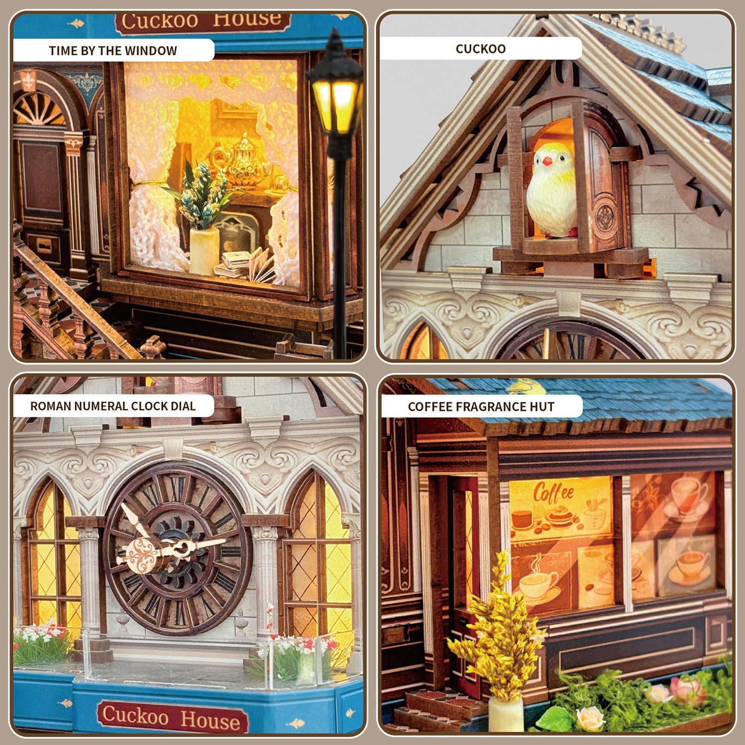 Kit casa fai da te: le nostre case delle bambole in miniatura sono confezionate in una scatola colorata con tutti gli accessori nelle immagini, come carta, legno, metallo, tessuto, plastica, luci a LED. Il kit Nook Book è più di un progetto fai-da-te Nook Book, è anche una squisita collezione e decorazione per la casa. Se decidi di costruire un kit per una casa delle bambole in miniatura, questo nuovo tipo è una buona scelta. Design speciale: casa delle bambole a tema naturale a cucù con vista dell'arredamento interno e illuminazione ambientale a LED super luminosa. Questa è una casa a tema cucù, una collisione di elementi naturali e realtà, orologi a cucù, quadranti, caffè, verde, libri e altro ancora. Andiamo nella natura e iniziamo insieme il viaggio della casa del cuculo. Kit casa delle bambole fai-da-te: la casa delle bambole deve essere assemblata da solo, non c'è bisogno di preoccuparsi della difficoltà, c'è un opuscolo stampato a colori in inglese e ha un'immagine dettagliata, facile da capire e seguire. Basta dedicare tempo e pazienza per incollare, assemblare e incollare insieme tutte le parti, al termine avrai una fantastica esperienza fai-da-te. Materiale durevole e sicuro: questo nuovo kit per casa delle bambole in miniatura fai-da-te è realizzato in legno di alta qualità, stabile, sicuro e liscio e non contiene sostanze nocive. I materiali del kit sono ecologici, i bordi sono lisci e senza bave, spessi e durevoli, sicuri e molto resistenti alla flessione o alla rottura. Età 14+ Regalo perfetto e fantastica decorazione per la casa: regalo creativo e significativo per San Valentino, compleanno e Natale per i tuoi bambini, amici, familiari e amanti. Nessuno rifiuterà un regalo così fatato. Non solo può sviluppare abilità manuali e creative, ma anche un lavoro manuale più delicato della media. Dopo il completamento, può essere una perfetta decorazione domestica. E il kit per la casa delle bambole fai-da-te è più utile e collezionabile
