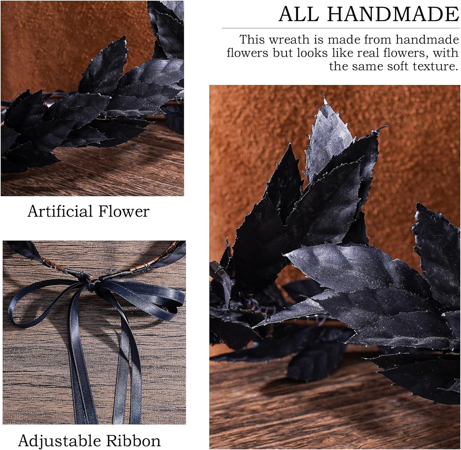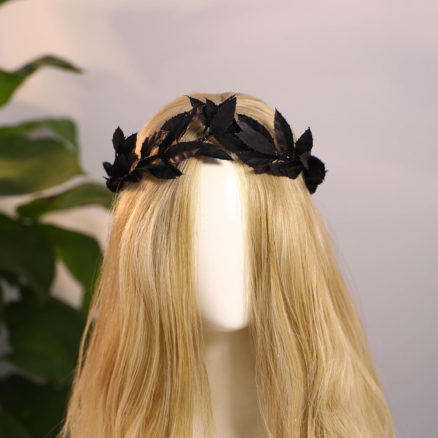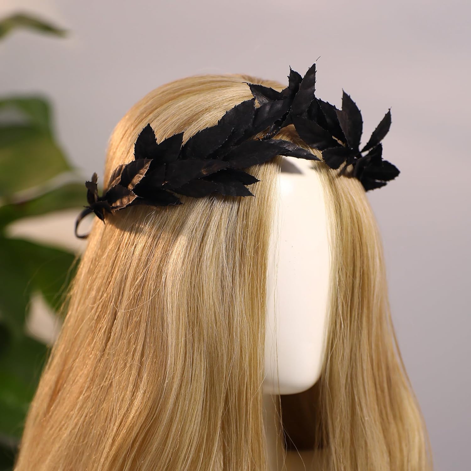 MOSTORY Corona di alloro greca nera - Cerchietto fatto a mano con foglie scure Fascia per capelli dell'imperatore della foresta Copricapo della foresta per uomini re Rinascimento Renfaire Costume cosplay Toga