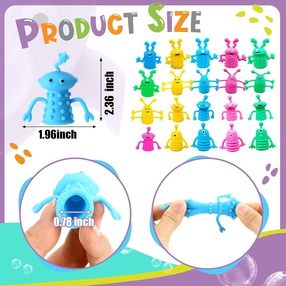 Puppet del dito medio: in materiale tpr di alta qualità per l'uso pratico, materiale, ad alte prestazioni, da usare. Dimensione: 4.1-6.1CM, Terrorosi giocattoli alieni, Le nostre marionette usano materiale e potenza, ma il dito è più ragionevole per raccontare storie Creature-finger-role-play: con questo giocattolo a dita puoi raccontare a tuo bambino una storia notturna. un giocattolo per migliorare l'interazione genitori-figli. Giocattoli di copertura delle dita:20PCS Molte quantità,colori ricchi, Inoltre può essere utilizzato come regalo di compleanno per amici e bambini, li piacerà. Piccole mani: Adatto per Halloween-abbigliamento, mascherate-carnevale feste, festività esibizioni, attività di gioco e altri per la decorazione del dito.
