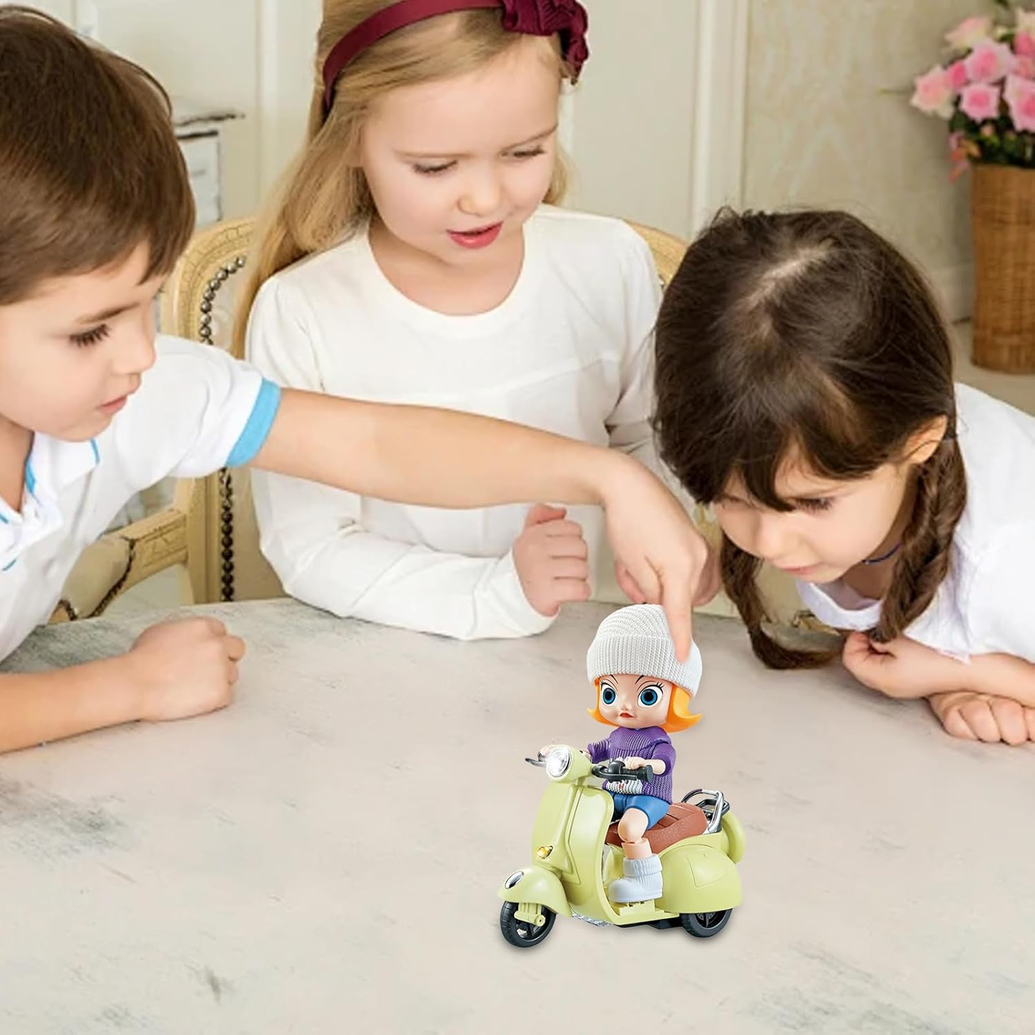 Sviluppo creativo: con fantastici movimenti rotanti e una funzione di rotazione a 360 gradi, questa moto ispira l'immaginazione e la creatività dei bambini attraverso emozionanti acrobazie rotanti. Divertimento giovanile: la forma irresistibile di una piccola pecora e il design cool da ragazza di questa moto con telecomando catturano l'immaginazione di un bambino. Con colori vivaci e un aspetto squisito che si adatta all'estetica dei bambini, è un'aggiunta unica e affascinante a qualsiasi collezione di giocattoli. Alta stabilità: questa moto con telecomando è costruita per i bambini e, grazie alla sua funzione di rotazione, garantisce stabilità e previene il ribaltamento. Sentiti a tuo agio sapendo che tuo figlio gioca in sicurezza con questi giocattoli. Prestazioni efficienti: grazie al suo avanzato sistema di azionamento elettrico, questa moto telecomandata dispone di fluidità di rotazione e rotazione, offrendo allo stesso tempo una potenza potente e duratura. Tempo di riproduzione più lungo senza alcuna interruzione. Apprendimento migliorato: progettata per soddisfare le abitudini di utilizzo dei bambini, questa moto con telecomando è dotata di un funzionamento semplice e di avviare la modalità di acrobazia attraverso la maniglia, migliorando la coordinazione occhio-mano e le abilità operative; adatta a bambini di età superiore ai 3 anni.