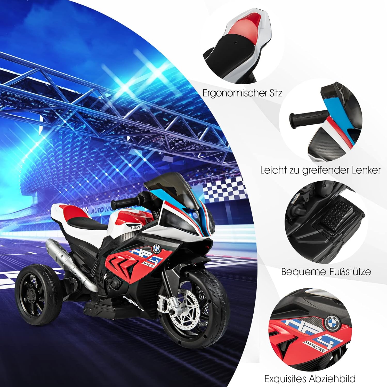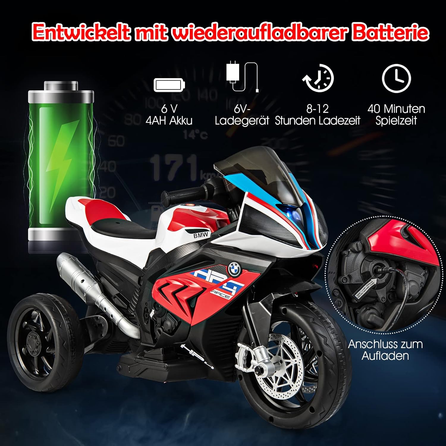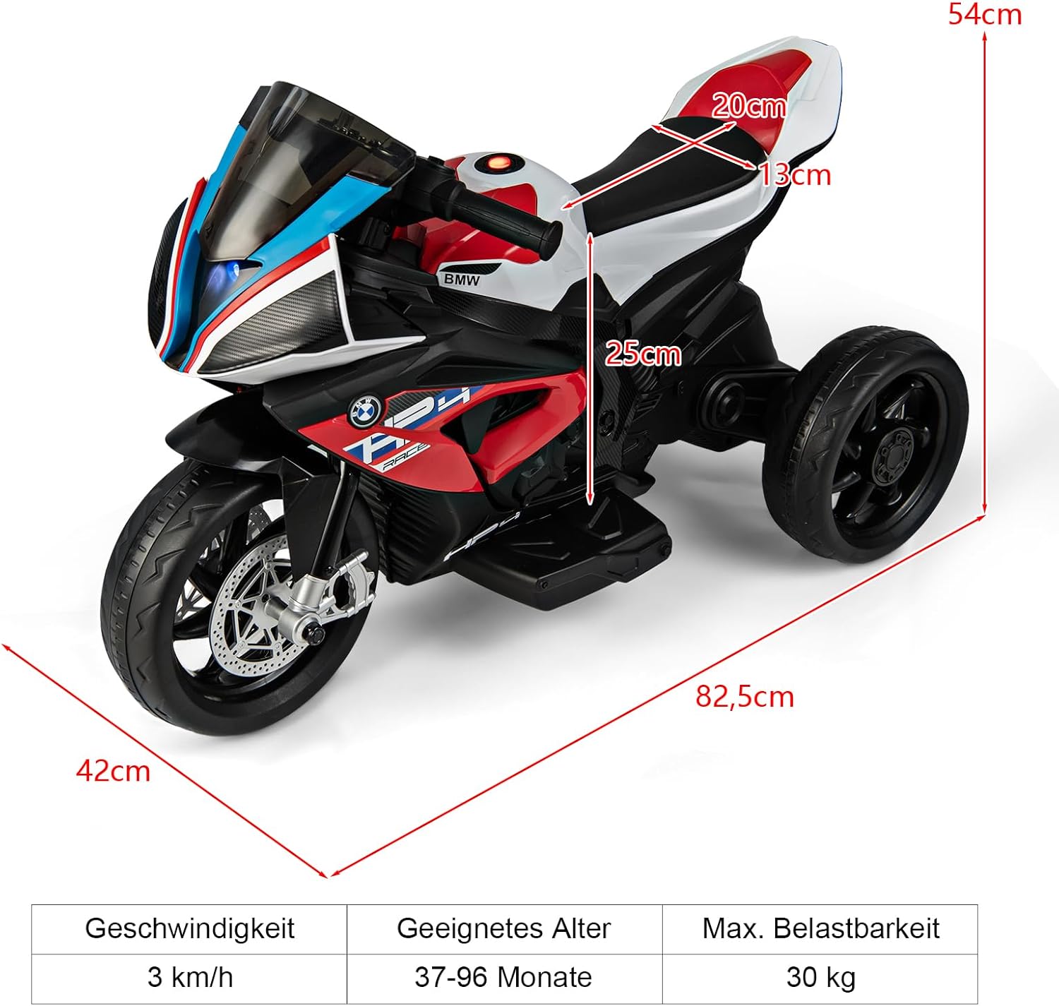 ✔ Con licenza BMW - ✔ Batteria da 6 Volt 4 Ah - ✔ 3 km/h - ✔ caricabile fino a 30 kg - ✔ Faro + funzione musicale + volume regolabile - ✔ 2 ruote da allenamento Esperienza di guida realistica - Questa moto per bambini ha un bell'aspetto e ha un fantastico parabrezza, fantastici adesivi sulla carrozzeria della moto e uno scarico realistico. Anche i fari contribuiscono all'attrattiva di questa motocicletta per bambini. Funzioni ricche: questa motocicletta elettrica per bambini ha molte funzioni divertenti come funzioni musicali, funzioni di apprendimento, funzioni di regolazione del tempo e del volume, ecc. E la porta USB aggiuntiva offre più opzioni musicali. Costruzione sicura e stabile: questa motocicletta per bambini è realizzata in materiale PP e ferro sicuri e durevoli, quindi è molto resistente e durevole. E' dotato di 2 ruote di supporto per una migliore stabilità. Regalo perfetto per i bambini - Le ruote spesse e resistenti all'usura delle moto sono adatte a tutti i tipi di superfici. I bambini possono migliorare la coordinazione fisica e i riflessi guidando una moto, che è un grande regalo per i bambini.