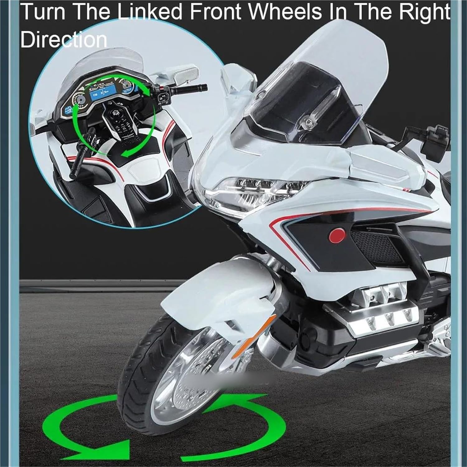 Modello di moto giocattolo, materiale: corpo in metallo zincato + telaio in ABS + pneumatico in gomma Il coperchio del vano posteriore può essere aperto, con suono e luce, assorbimento degli urti delle ruote, forte e durevole Il modello di moto è un modello squisito realizzato in stretta conformità con la forma, la struttura, il colore, gli interni e altre proporzioni del veicolo originale. È un modello in miniatura del veicolo originale ed è progettato per riprodurre l'aspetto del veicolo originale. Modello di auto di simulazione Realizzato in resistente lega di zinco, è resistente alle cadute e all'usura, garantendo la durevolezza del modello e la sua lunga conservazione. La finitura della vernice è uniformemente liscia, con colori vivaci e duraturi che resistono allo sbiadimento e alle scheggiature, garantendo un aspetto costantemente brillante.