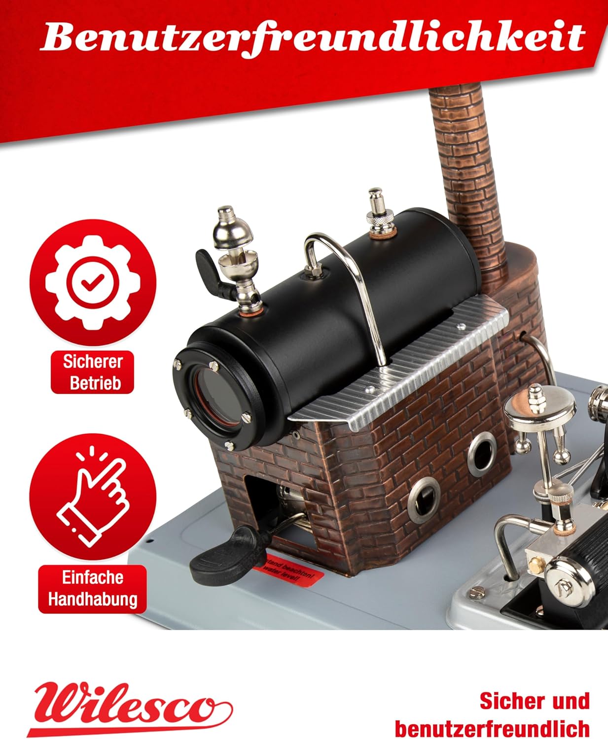 Ich habe mir die Wilesco Dampfmaschine D6 bestellt, um nochmals in Kindererinnerungen faszinierender Art und Weise einzutauchen. Dabei hat mich bei auspacken der Maschine und des kompakten Designs direkt der Charme des Originals wieder eingefangen. Das ist für mich etwas echt Besonderes wieder mit der Wilesco Maschine umgehen zu können. Ich erinnere mich noch daran, dass meine Maschine etwas größer war und auch die gesamte Anlage mit der Grundplatte etwas größer und schwerer daher kam. Kann sein, dass es damals - 40 Jahre zurück - auch ein anderes Modell der Serie war, aber kompakter verbreitet es einen definitiv gleichen Charme und man fühlt das wertige Material. Auch farblich kommt es im schicken schwarz elegant daher. Zur Funktion ist es immer wieder ein Moment mit Freude, wenn der Dampf im Kessel ausreicht, um das Schwungrad zum laufen zu bringen. Man erlebt, wie einfach doch Physik und Kraft durch einfachster befeuern des Kessels erzeugt wird und man mit der Kraft des Schwungrads wenn zusätzlich erworben, auch weitere Maschinen und Werkzeuge angetrieben werden können. Zur mitgelieferten Zubehör finde ich die Verpackung des Maschinenöls nicht so gelungen, da der Schlauch recht ungenau dosierbar ist und das Wiederverschließen schwerlich funktioniert. Da wäre ein kleines Gefäß meiner Meinung nach sinnvoller gewesen. Ebenso möchte ich noch sagen, dass mir die kompakte Bauweise der Maschine durchaus nicht weniger Spass bereitet hat, aber das in Summe doch um einiges geringere Gesamtgewichts auch der Grundplatte es bei voller Leistung nicht verhindern lässt, dass die Maschine anfällig ist fürs sich bewegen und wegrutschen. Weil das aber nur eine kleine Einschränkung ist, ziehe ich nur einen Stern ab. Für alle, die der nachfolgenden Generation einen realen spannenden Einblick in Physik und was da auf direkten Wege geschieht gewähren möchten, ist die Wilesco Dampfmaschine D6 eine mitreißende Erfahrung und kann ich nur dazu raten sich damit den Nachmittag mal zu verschönern. Daher kommt eine klare Empfehlung von mir.