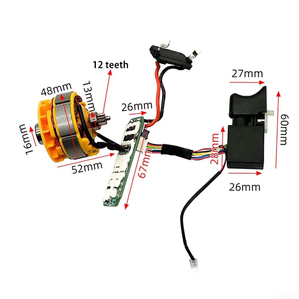 Potente ed efficiente: il trapano elettrico senza spazzole da 8 V è dotato di un motore potente che offre prestazioni eccellenti. Con la sua tecnologia brushless garantisce un'efficienza superiore e prolunga la vita del trapano. 【Controllo preciso e versatilità】 Dotato di una scheda di controllo del motore, questo trapano elettrico offre un controllo preciso della velocità per varie applicazioni. È dotato di un design a due velocità che consente di passare facilmente dalla perforazione ad alta velocità alle applicazioni a coppia elevata. 【E affidabile】 Realizzato con materiali, questo trapano elettrico è costruito per durare. È progettato per resistere a un uso intensivo e offre una durata superiore per garantire prestazioni durature in qualsiasi ambiente di lavoro. Facile da usare e regolare: l'interruttore e il pannello di controllo inclusi nel set rendono comodo e facile il funzionamento di questo trapano elettrico. Puoi regolare facilmente la velocità e controllare la profondità di perforazione in base alle tue esigenze, fornendo risultati ottimali per qualsiasi attività. 【Ampia compatibilità】 Progettato per trapani elettrici, questo gruppo motore brushless è compatibile con vari modelli. La sua potenza da 8 V e il design a 12 denti garantiscono compatibilità e forniscono prestazioni eccellenti per soddisfare le esigenze di vari progetti di perforazione.