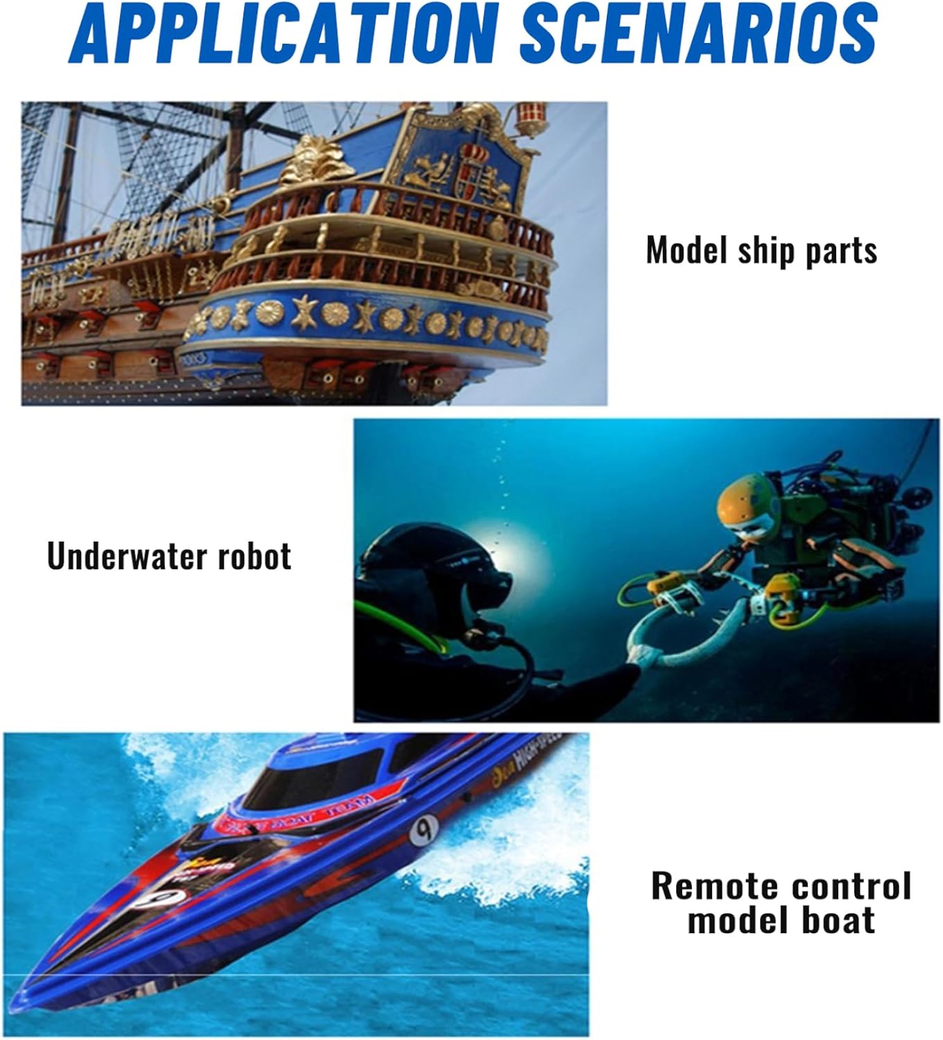 Applicazione versatile: che tu stia costruendo una barca RC, un robot o un veicolo sottomarino, questi propulsori sono la scelta perfetta. Il loro design compatto e le prestazioni efficienti li rendono adatti a una varietà di progetti e applicazioni fai-da-te. Controllo e precisione ottimali: questi supporti subacquei forniscono un controllo preciso e ti consentono di navigare con precisione sulla tua barca RC o robot. Le loro prestazioni affidabili garantiscono un funzionamento regolare e stabile, rendendoli un must per gli appassionati del fai-da-te. Prestazioni potenti: questi propulsori subacquei per motori per barche RC da 2 pezzi forniscono potenza ed efficienza eccezionali, rendendoli ideali per jet boat fai-da-te e progetti robotici. Con un intervallo di tensione compreso tra 10 e 20 V, forniscono prestazioni affidabili in varie applicazioni. Durabilità e longevità: questi motori impermeabili sono costruiti con materiali di alta qualità e sono progettati per un uso duraturo in ambienti sottomarini. La costruzione garantisce che possano resistere ai rigori di un uso frequente senza compromessi. Installazione semplice: il kit motore per barca RC è dotato di tutti i componenti necessari per un'installazione senza problemi. Con istruzioni chiare e un design intuitivo, puoi integrare rapidamente questi motori nei tuoi progetti senza complicazioni.