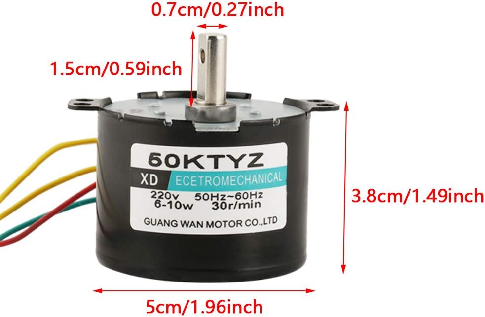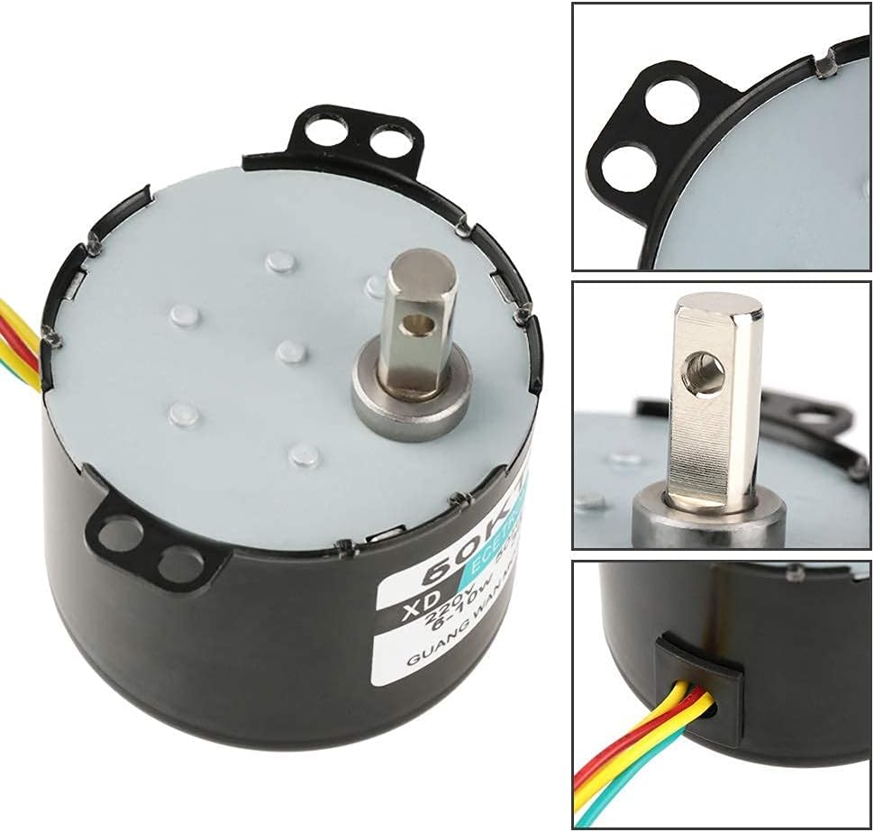 ALTA QUALITÀ. Il motore è realizzato con un albero in acciaio 45, resistente all'usura, evita la rottura dei denti, quindi con una lunga durata. Prendi una bobina di filo di rame, con bassa generazione di calore e basse perdite COPPIA ELEVATA. Burro importato, piccolo attrito per mantenere una coppia elevata e un basso rumore. Evita il rumore MOTORE SINCRONO STABILE. Il motore è costante al di sotto della frequenza nominale e non è influenzato dalla tensione. SUPPORTO CW e CCW. È più comodo e facile per il tuo progetto. Il design a 4 fori per viti garantisce una raccolta facile e stretta APPLICAZIONE: puoi usarli in strumenti, automazione, macchine per colla, lampade da palcoscenico e attrezzature per mostre pubblicitarie, controllo automatico delle tende, regolatore automatico di tensione, quadro elettrico ecc.