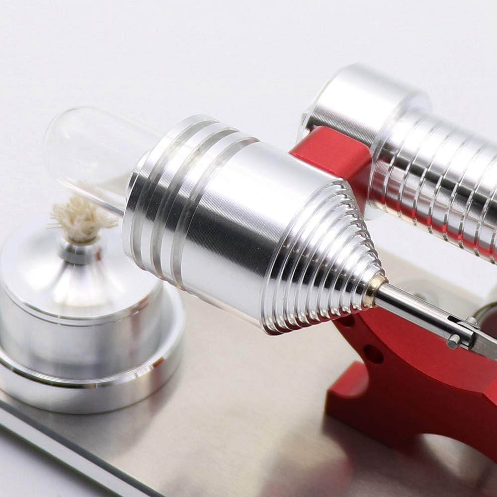 La connessione è realizzata in metallo rosso e ha un aspetto nuovo e chic. Il corpo è realizzato in lega di alluminio lucidato a specchio La superficie è liscia e luminosa, emette luce argentata, non si arrugginisce e non si sbiadisce facilmente. Sembra molto meccanico e tecnico e realizza la combinazione di consistenza e bellezza Stabile e resistente, il tubo di riscaldamento al quarzo può funzionare ad alta velocità per lungo tempo senza usura. La lampada ad alcool è fissata sulla base in metallo per una maggiore sicurezza e affidabilità Questo è il modello dinamico fai-da-te del motore a vapore Stryn e la capacità di fare esercizi È un modo per allenare le capacità e le capacità mentali dei bambini. L'installazione richiede pazienza