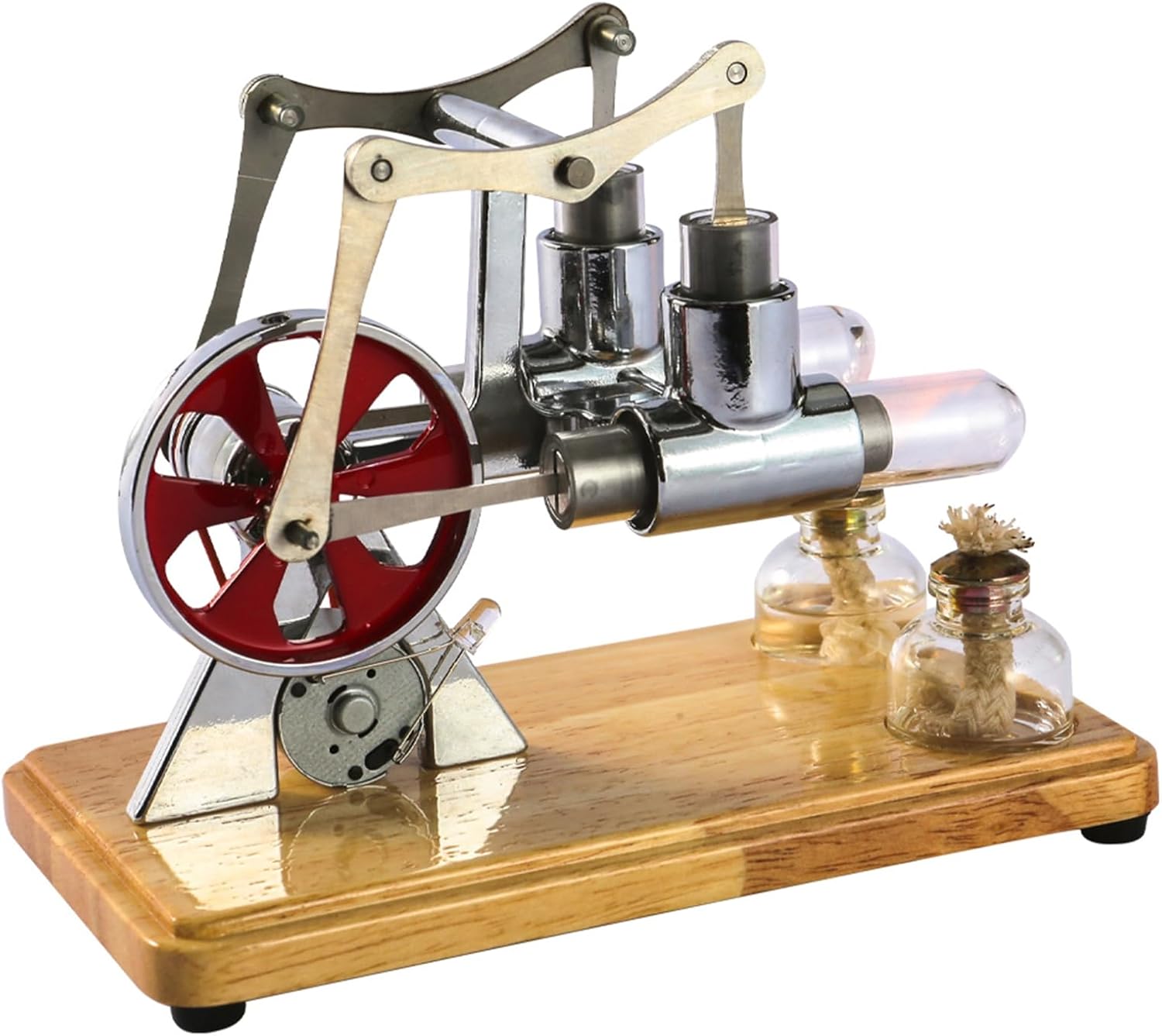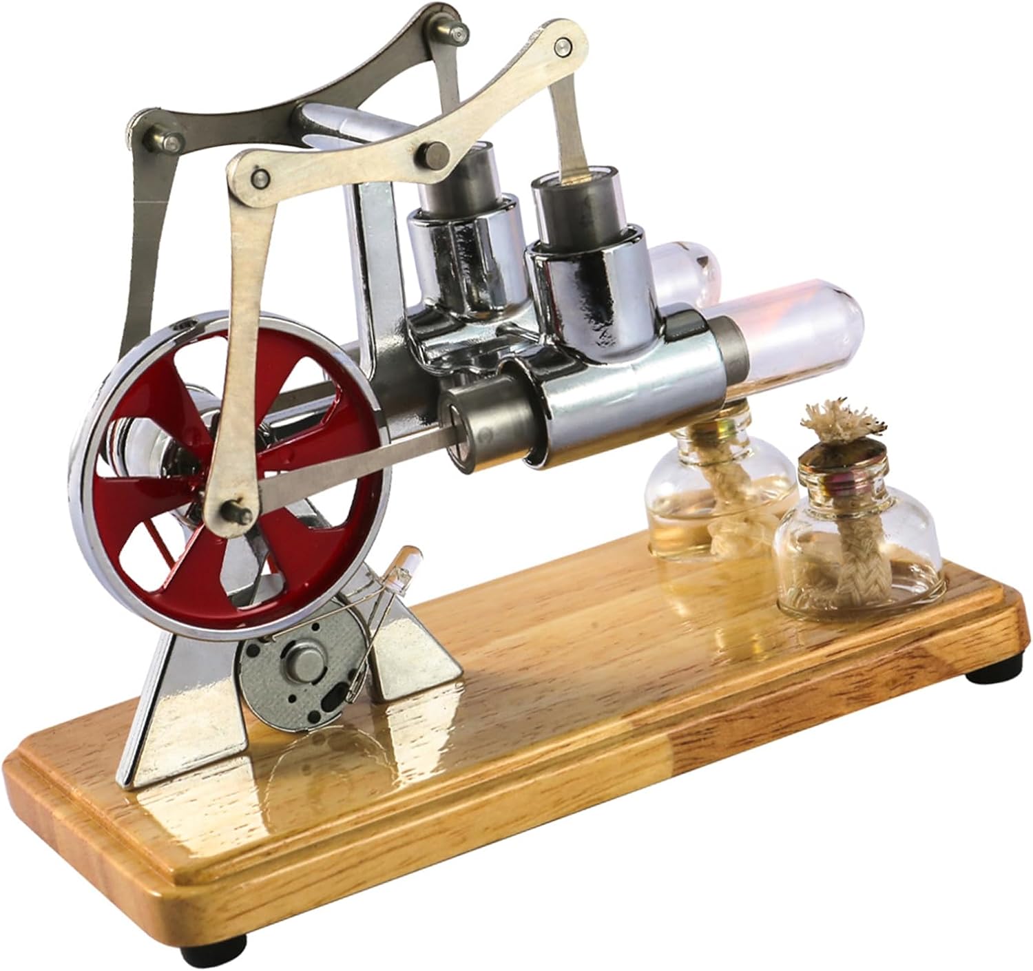 【Costruzione superiore】 - Fai una dichiarazione forte con il nostro motore Stirling. Creato con lega di zinco e acciaio inossidabile di alta qualità, questo modello montato su una robusta base in rovere con quattro cuscinetti antiscivolo garantisce bellezza e durata. Un volano lavorato con resina epossidica metallica ne esalta il fascino industriale. 【Illuminazione LED dinamica】 - Mostra l'essenza dell'energia cinetica con il nostro kit motore Stirling. Mentre i volani ruotano rapidamente, portano una lampadina del generatore, attirando così l'attenzione e suscitando curiosità quando la macchina è in funzione. 【LASCIA PRESTAZIONI】 - Prova la potenza del kit OurSteam Motors. Il motore a doppio cilindro è robusto e produce senza sforzo una tensione compresa tra 3,0 ~ 5,5 V. Facile da usare: per azionare il nostro modello di motore, basta riempire il bruciatore ad alcol con il carburante alcolico al 95%, accenderlo, lasciarlo bruciare per circa 30 secondi e dare una leggera spinta alla ruota. 【Strumento educativo】 - Il nostro modello Stirling Engine funge da utile strumento educativo. I tubi di vetro trasparenti e le lampade ad alcool forniscono una visione diretta del movimento del pistone, rendendolo perfetto per studenti, insegnanti e amici.
