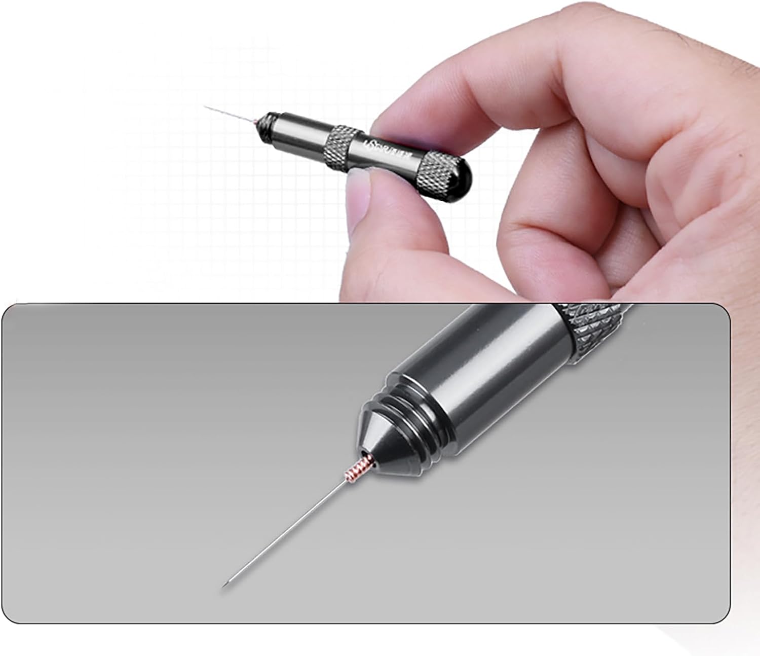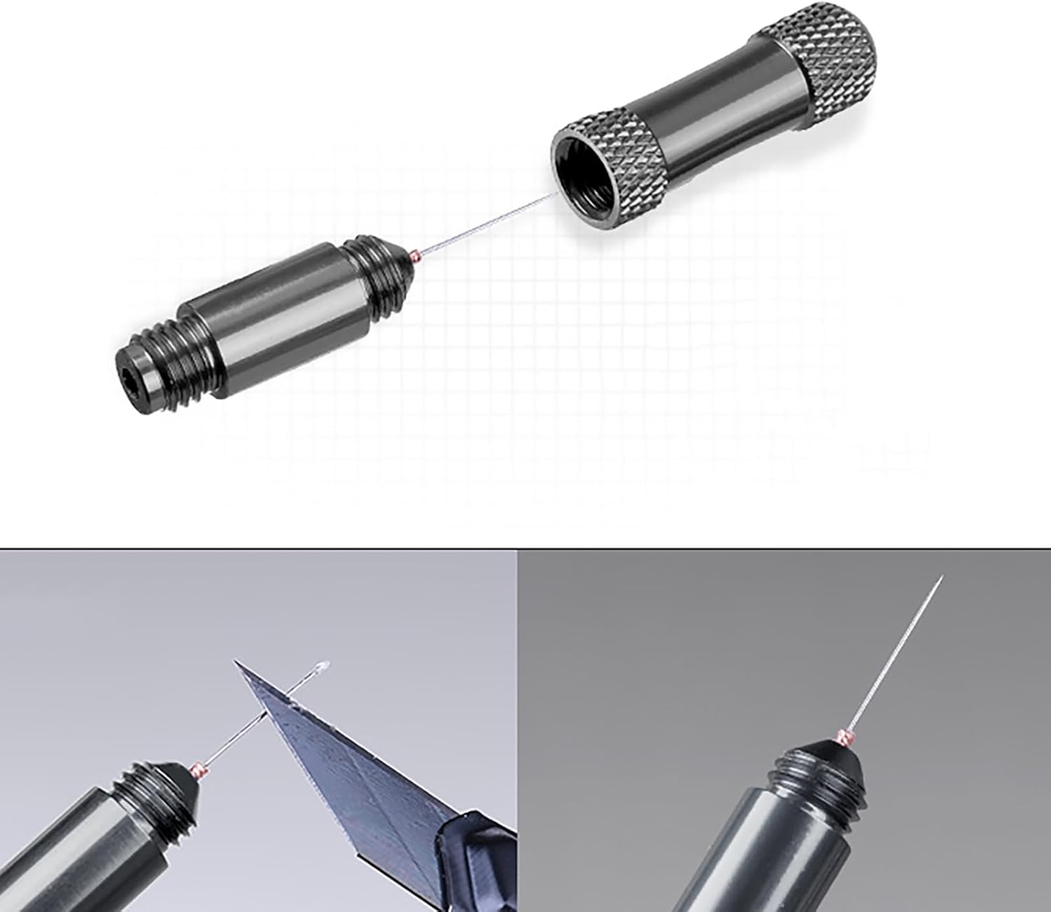Erogare la colla attraverso l'ago e applicarla sulle microparti per evitare traboccamenti, che lascerà tracce della colla. Punta in acciaio, liscia e dura, dopo l'uso, attraverso il coltello raschiando direttamente, può pulire i residui di indurimento. Materiale della cassa in lega di alluminio e composizione dell'ago in acciaio inossidabile, resistente alla corrosione e all'usura. In grado di controllare accuratamente il flusso di colla e la posizione di erogazione, per garantire che ogni volta che l'erogazione della colla possa ottenere risultati accurati. Il pacchetto include: 1 x colla Modeler Dispensing Aid Stick.