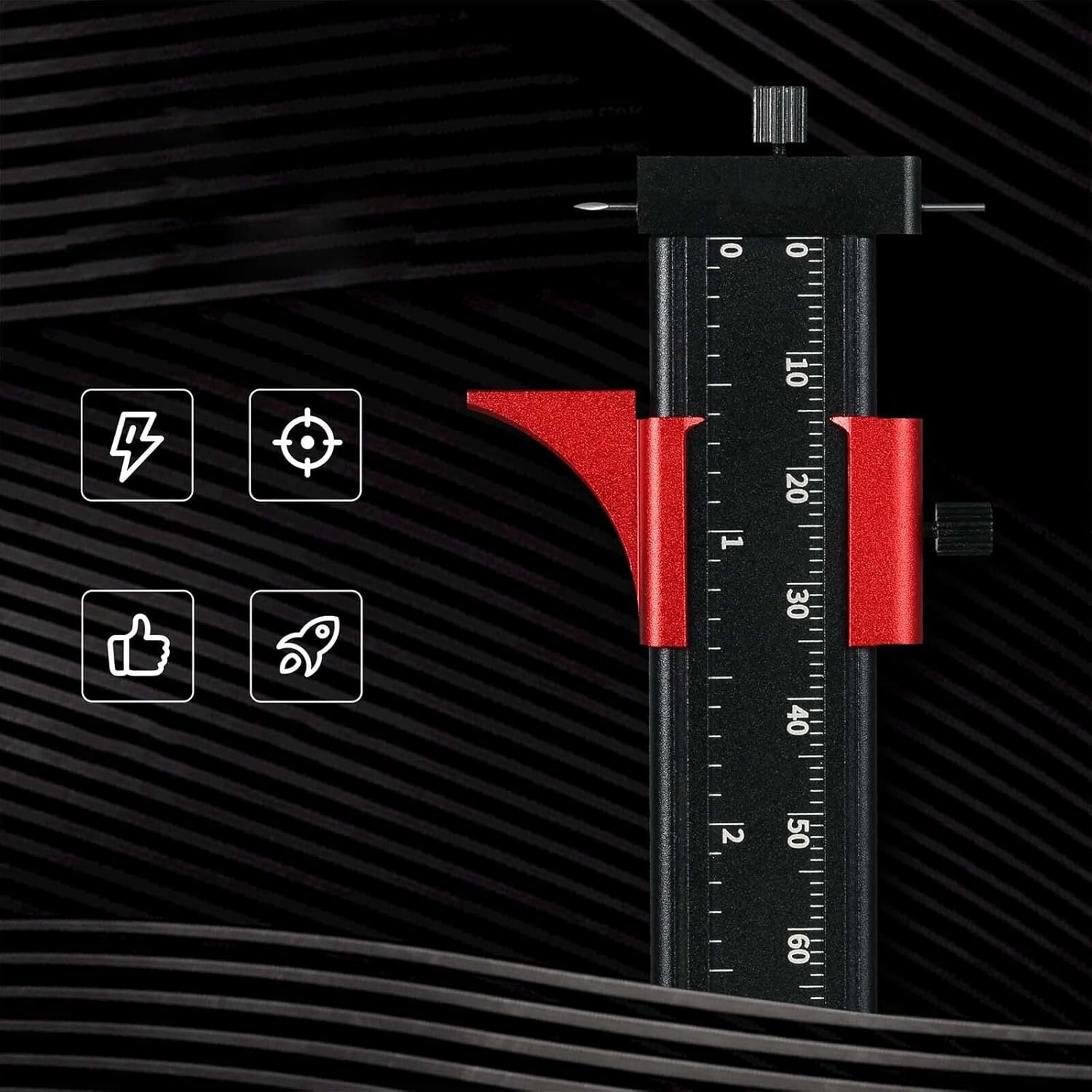 Il righello isometrico è stato allungato, allargato e addensato nel suo complesso, il che è comodo e portatile. La dimensione precisa della linea di incisione complessiva è fino a 80mm e le doppie rotaie di scorrimento fisse sono controllate con precisione. Il dado superiore controlla la posizione dell'ago di marcatura e il dado di estremità destra regola la posizione della scala di vernier. Il righello triangolare della marcatura della testa dell'acciaio al tungsteno è affilato e resistente all'usura, la marcatura è regolare e l'efficienza operativa è migliorata. Materiale: lega di alluminio, acciaio al tungsteno, acciaio inossidabile