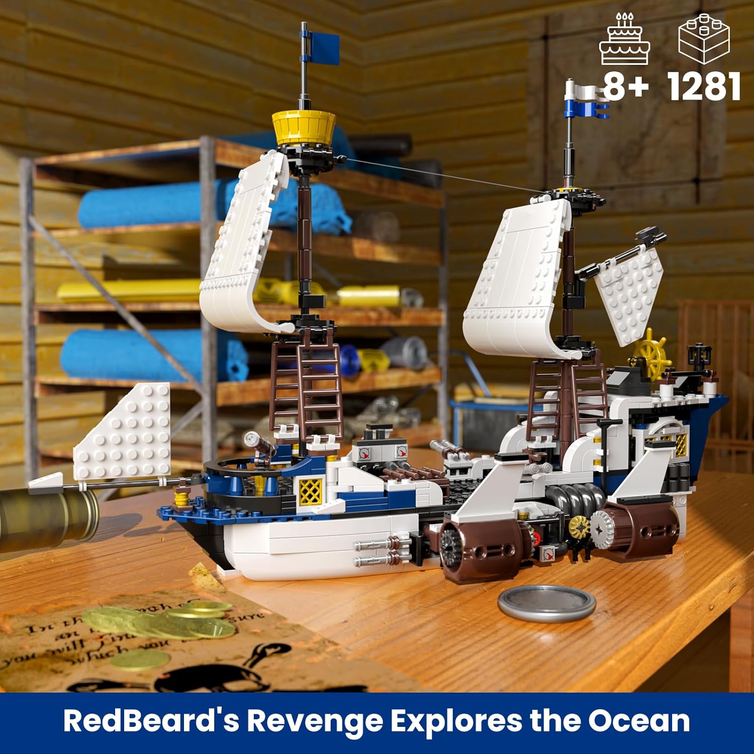 Giocattolo per la costruzione di navi pirata: nave in mattoni dotata di cuscini pirata, bandiere e torri pirata e appositamente attrezzata con getti per realizzare l'integrazione di nave e astronave. Saliamo a bordo di questo modello di barca a vela Savior Baustaz e partiamo insieme per un viaggio sconosciuto. Accessori spaziosi: il set di mattoncini della nave pirata è dotato di una varietà di accessori, tra cui bandiere dei pirati, torri di guardia, telescopi, cannoni, ecc. Il giocattolo della nave pirata è composto da un totale di 1281 pezzi e viene fornito con un manuale di istruzioni chiaro e dettagliato. Dopo il montaggio la dimensione è 41,5 × 19,5 × 29,4 cm. 【Dettagli mobili】: il telescopio per insetti giocattolo della nave pirata può ruotare di 360° per osservare la situazione circostante. Il ponte è dotato di un dispositivo di sterzo che può far girare il jet, simulare l'avvio dei jet e imitare il funzionamento del veicolo spaziale. I lati sinistro e destro contengono virate regolabili e il timone può girare senza intoppi. Gameplay ricco, in attesa di essere esplorato, 【Miglior regalo】: blocchi di costruzione per barche a vela con bellissime scatole colorate, perfetti come regalo di festa per gli amanti delle navi pirata di età superiore agli otto anni e per i collezionisti di modelli di navi. Costruisci questa nave pirata con i tuoi amici e bambini per migliorare la tua creatività, concentrazione, spirito avventuroso e immaginazione. Saremo felici di aiutarti. Se avete domande, contattateci.