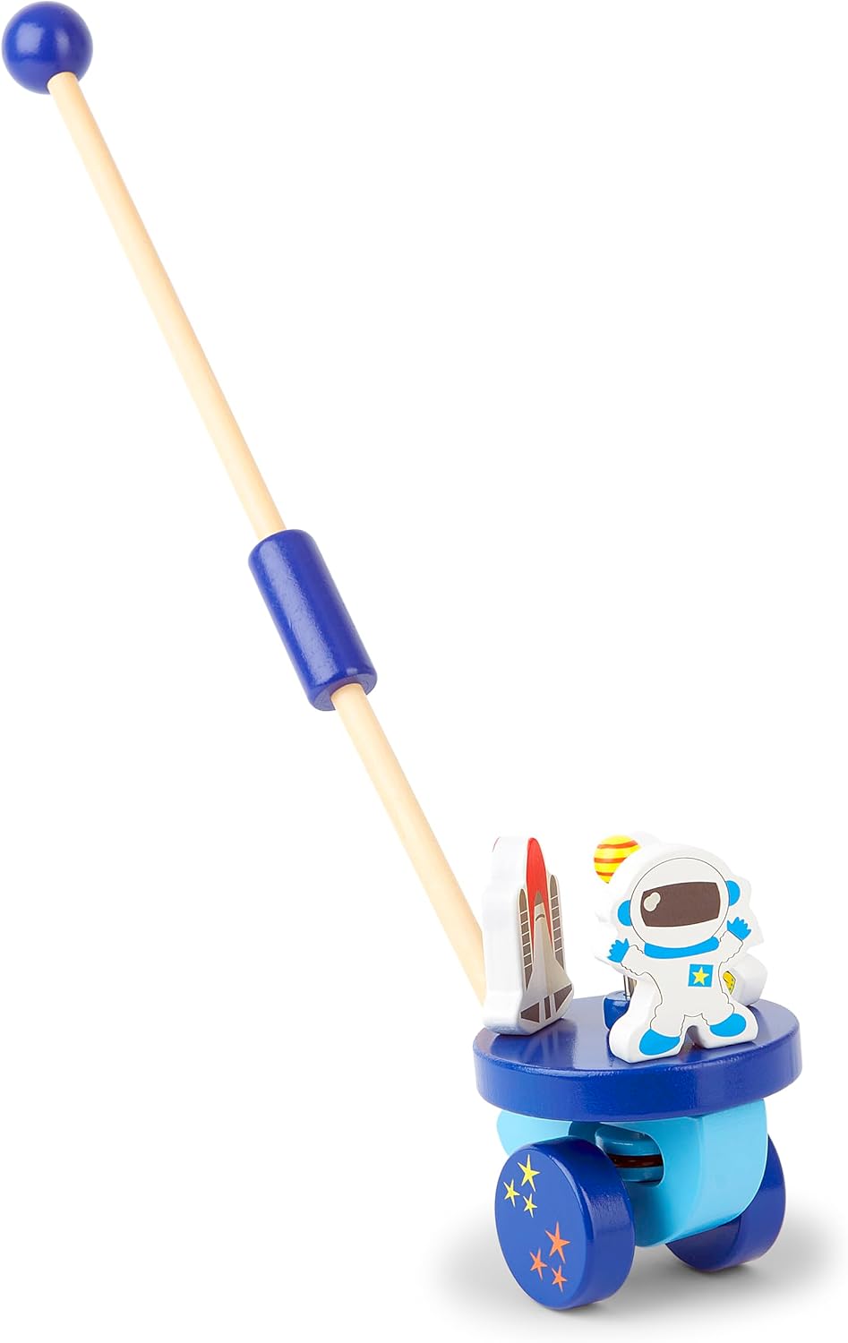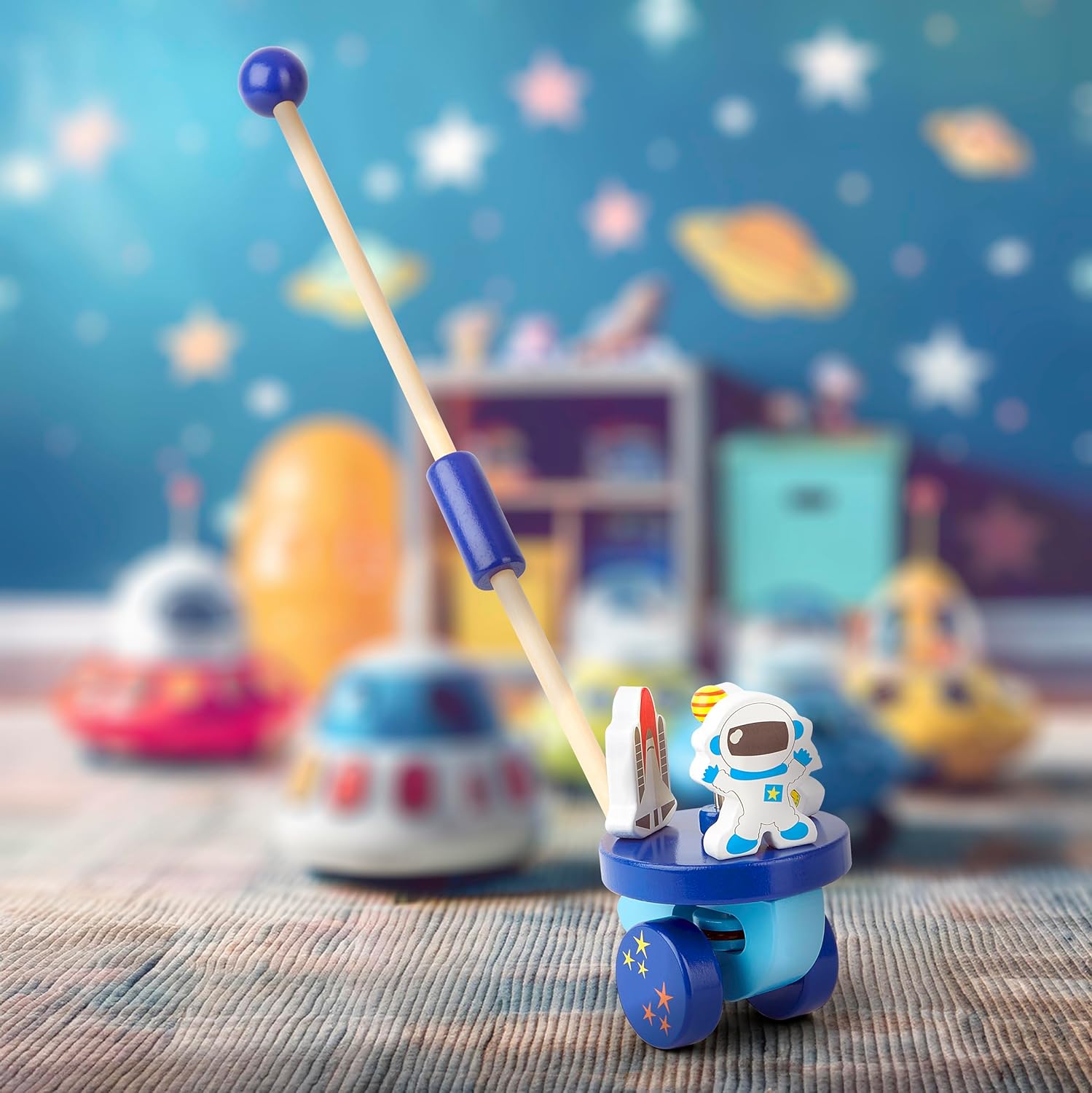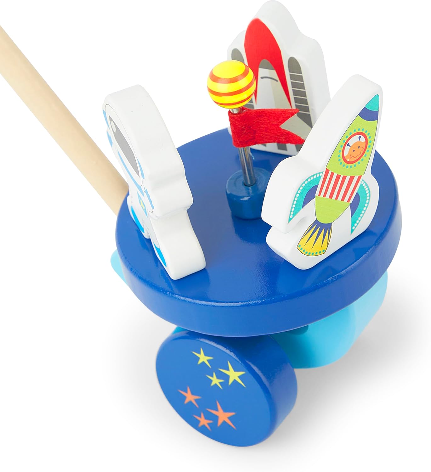 Questo tradizionale giocattolo a spinta in legno a tema razzo spaziale è super colorato e farà divertire i più piccoli aiutandoli a camminare e a coordinare mani e occhi. Testato e adatto a bambini da 12-18 mesi. Dimensioni: 520 x 120 x 110 mm (lunghezza x larghezza x profondità) L’asta è facile da avvitare in pochi secondi, è lunga 500 mm ed è sormontata da una pallina dipinta in un blu intenso che si abbina a quello delle ruote. Testato per essere sicuro dai 12-18 mesi questo tradizionale giocattolo in legno è perfetto per ogni bambino. La stessa linea “spaziale” include orologio, fermalibri, salvadanaio, set appendiabiti, metro da parete e carillon. Uno dei nostri giochi a spinta per bambini più venduti. La stessa linea comprende anche topolino, orso blu, maialino rosa e adorabile piccola zebra. Prodotto esclusivo Mousehouse