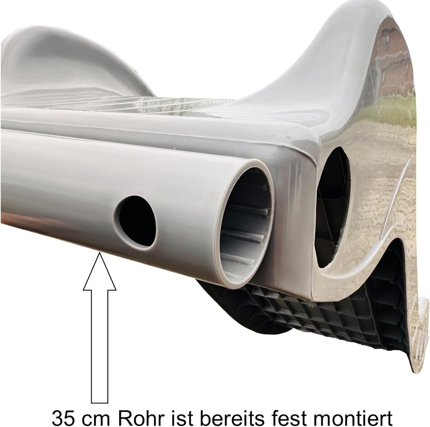 move and stic - Scivolo, dritto, con beccuccio e una lunghezza di 149 cm Ora la torre di arrampicata non è più solo una torre di arrampicata - ora diventa una torre di scivolo! Il move and stic scivolo è montato su un'altezza del piedistallo di 85 cm. Non sono necessarie viti aggiuntive, ma le normali chiusure per tubi per il fissaggio. Lo scivolo ha già un tubo premontato. Basta posizionarlo all'altezza di 80 cm in orizzontale e il gioco è fatto. Il set comprende: scivolo, dritto, lungo 149 cm. Per il montaggio al telaio avrete bisogno solo di 2 chiusure per tubi (senza viti a piastra), che nella maggior parte dei casi rimangono ancora.