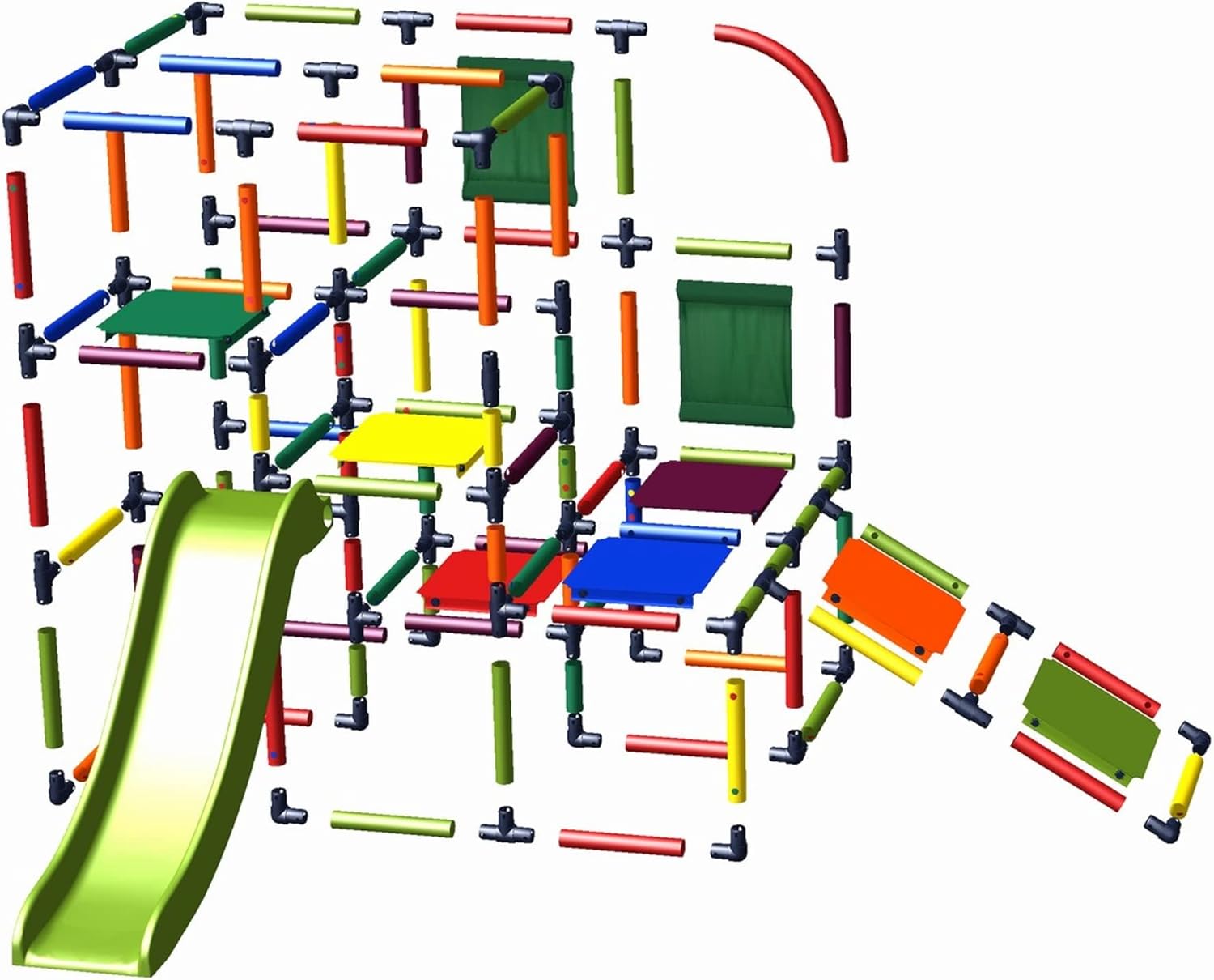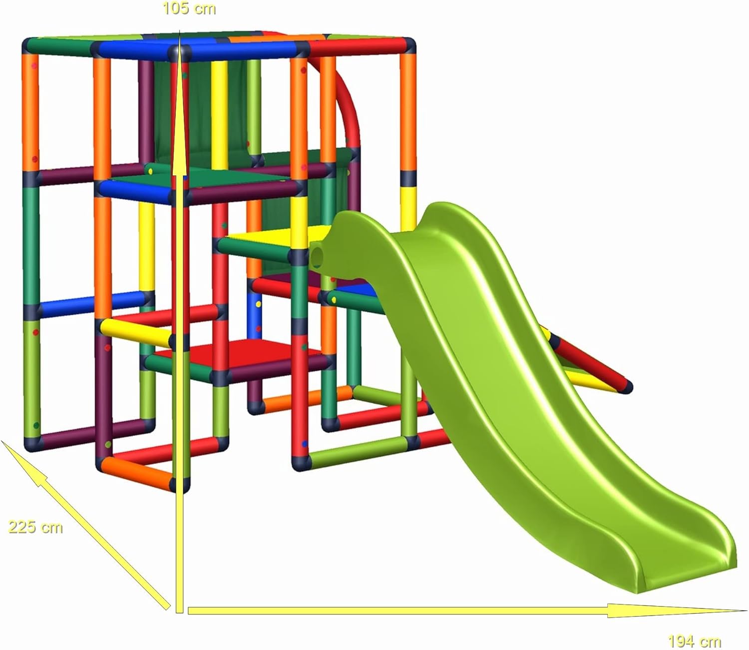 Questa torre da gioco colorata offre ai più piccoli un sacco di divertimento, esercita le capacità motorie e consente sempre nuove opportunità di provare. Ha uno scivolo Move and Stic che invita a scivolare, completa il divertimento del gioco e mantiene l'interesse dei vostri bambini sveglio a lungo. Dimensioni: 2,25 x circa 1,94 x 1,05 m Entra nel meraviglioso mondo della costruzione creativa con Move and Stic. Move and Stic significa divertimento per tutta la famiglia. Costruire è un gioco da ragazzi con Move and Stic. Il sistema è composto da tubi, giunti e piastre in colori adatti ai bambini, che vengono incastrati e avvitati. Le casse mobili sono modulari, possono essere assemblate tra loro e consentono un adattamento a qualsiasi situazione della stanza. Per un divertimento sempre nuovo, tutti i componenti Move and Stic sono disponibili anche singolarmente. Divertimento puro nella cameretta dei bambini e all'aperto. Move and Stic è resistente alle intemperie ed è realizzato in plastica riciclabile di alta qualità, resistente ai raggi UV. Facile da pulire. In caso di necessità (ad esempio uso nell'asilo o nella madre del giorno) possiamo offrirvi lo stesso modello con sovrapprezzo con rinforzo in alluminio. Vi preghiamo di contattarci in modo semplice.