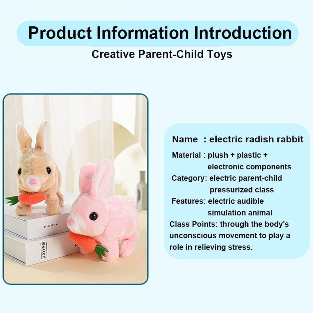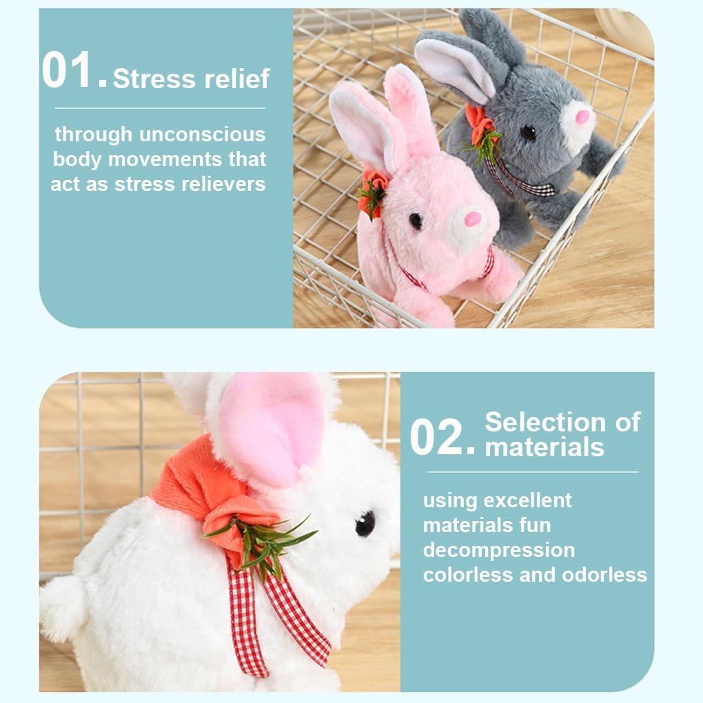 Movimenti realistici: questo peluche coniglio elettrico può camminare e abbaiare, portando un divertimento senza fine ai tuoi bambini con i suoi movimenti realistici Saltare e rimbalzare come un vero coniglio: i tuoi bambini rimarranno stupiti di come questo animale simulato possa scuotere le orecchie e il naso proprio come un vero coniglio, offrendo ore di divertimento Portatile e leggero: grazie alle sue dimensioni portatili e alla sua leggerezza, questo giocattolo per animali domestici può essere portato ovunque, consentendo ai bambini di giocarci mentre sono in movimento Comodo: realizzato in materiale morbido e liscio, questo coniglio è comodo al tatto, rendendolo il compagno dei tuoi piccoli Molteplici opzioni di colore: scegli tra una varietà di colori per abbinare le preferenze di tuo figlio e migliorare il suo tempo di gioco con questo coniglio dall'aspetto realistico
