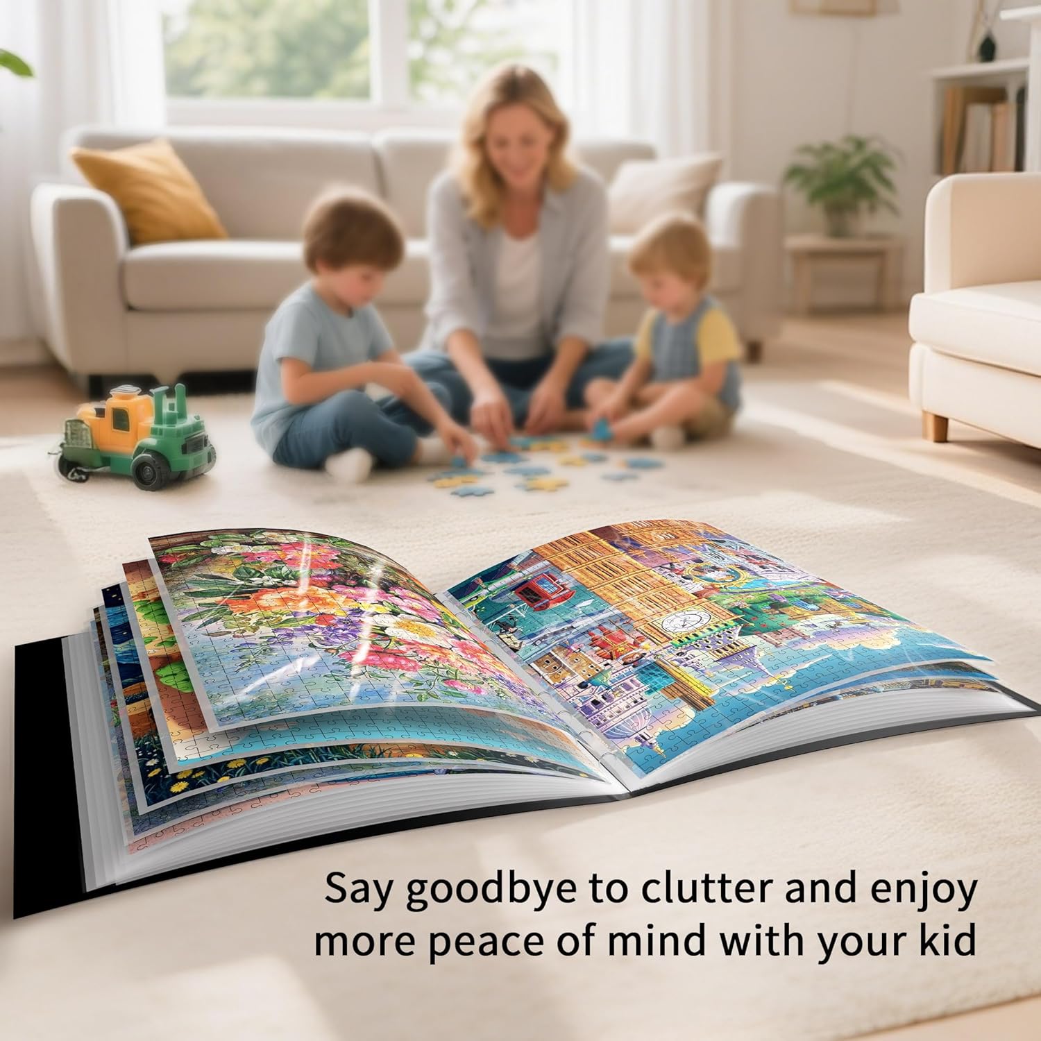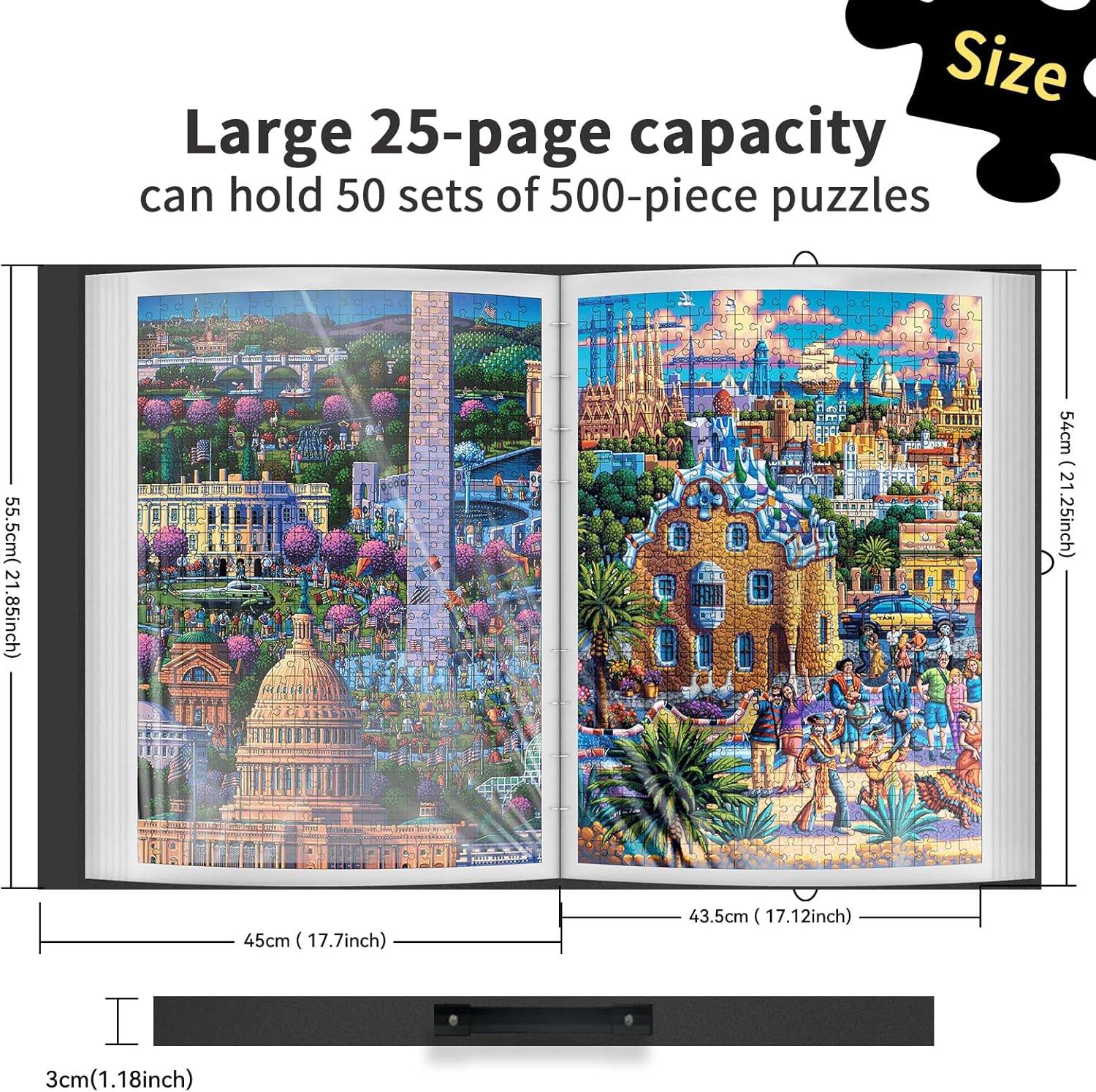 Conservazione di Fino a 50 Puzzle: la nostra cartella per puzzle ha un totale di 25 tasche e può contenere fino a 50 set di puzzle da 500 pezzi. Le dimensioni delle tasche sono 54 x 43,5 cm (21,25 x 17,12 pollici). Abbiamo inserito una chiusura a fibbia sui lati dell'organizzatore di puzzle per evitare che cadano Conservazione e Trasporto Perfetti: Il nostro organizzatore di puzzle è comodo per conservare i puzzle finiti in un unico posto e proteggerli dalla polvere. Quando vorrete divertirvi di nuovo o mostrarli ai vostri amici, basterà estrarre l'organizer per puzzle e sfogliarli comodamente. Se non sapete come conservare ed esporre le vostre creazioni, il nostro organizer per puzzle è perfetto per voi Materiale Robusto e Durevole: l'organizer per puzzle MOZOOSON è realizzato in materiale PP di alta qualità e dispone di tasche ispessite. È sicuro, inodore, resistente e durevole e offre un'ottima conservazione per le vostre creazioni di puzzle Supporto Portatile: grazie alla sua robusta maniglia, è possibile portare facilmente con sé l'organizzatore di puzzle e iniziare a divertirsi con i puzzle in qualsiasi momento, sia in viaggio che durante una serata di gioco, senza doversi preoccupare di danneggiare i puzzle Regalo Ideale per Gli Amanti dei Puzzle: per gli amanti dei puzzle, la cartella da 500 pezzi è un regalo ideale, in quanto li aiuta a conservare meglio le loro creazioni. È adatta anche per raccogliere poster di grande formato, foto e molto altro. Un regalo pratico e premuroso per Natale, compleanni, anniversari o altre occasioni
