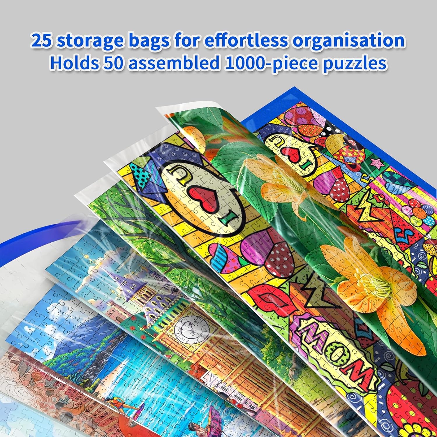 Conservazione di fino a 50 Puzzle: Il nostro raccoglitore per puzzle ha un totale di 25 tasche e può contenere fino a 50 set di puzzle da 1000 pezzi. Le dimensioni della tasca del raccoglitore per puzzle sono di 72*54 cm. Abbiamo aggiunto un design a fibbia di sicurezza sui lati dell'organizzatore di puzzle per proteggerlo da cadute. Conservazione e Trasporto Perfetti: Il nostro organizzatore di puzzle con accessori per puzzle è estremamente pratico, consentendoti di conservare i puzzle completati in un unico posto e proteggerli dalla polvere. Quando desideri rivederli o mostrarli agli amici, basta estrarre l'organizzatore di puzzle e sfogliarli comodamente! Se stai lottando con il modo di conservare e mostrare le tue creazioni di puzzle, il nostro raccoglitore per puzzle è perfetto per te! Materiale Robusto e Durevole: Lo strumento di conservazione dei puzzle MOZOOSON è realizzato in materiale PP di alta qualità per il guscio e presenta tasche rinforzate. È sicuro, privo di odori, robusto e resistente, offrendo un'eccellente conservazione per le tue creazioni di puzzle. Accessori per Puzzle Facili da Usare: Se hai l'abitudine di utilizzare pellicola per copertine di libri, puoi facilmente far scorrere le tue creazioni di puzzle nelle tasche sottili della raccoglitore per puzzle. Se preferisci non incollare i puzzle e desideri la flessibilità di rifarli in seguito, puoi inserire cartoncino o sottili pannelli per un migliore supporto quando li inserisci nelle tasche di conservazione. Regalo Ideale per gli Appassionati di Puzzle: Per gli amanti dei puzzle, il raccoglitore per puzzle è un regalo ideale in quanto li aiuta a preservare meglio le loro creazioni di puzzle! È adatto anche per la collezione di vari poster di grandi dimensioni, foto e altro ancora! È un regalo pensato e pratico per Natale, compleanni, anniversari o qualsiasi altra occasione.