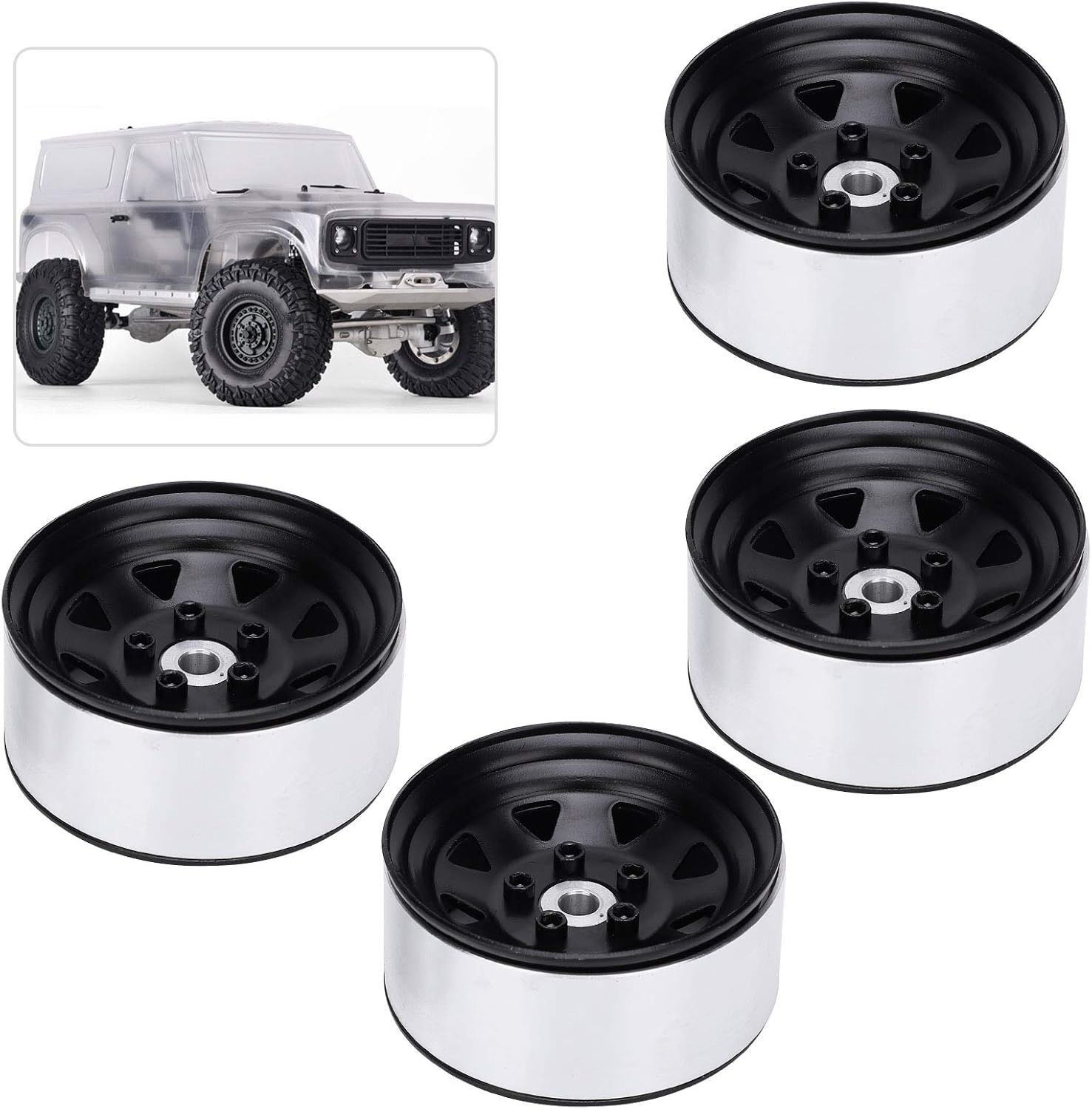Mozzi per Cerchi in Lega di Alluminio da 1★★★ È realizzato in lega di alluminio ed emana lucentezza , è resistente all'usura e durevole. ★★★ Pregevole fattura, modellazione ad alta simulazione, perfetta vestibilità per l'auto.Accessori per automodelli ★★★ Apertura precisa con tecnologia di precisione CNC. Squisita fattura, aspetto nuovo, facile installazione non richiedono strumenti complicati e passaggi noiosi.Modelli di giocattoli ★★★ Sostituire i cerchi per evitare di danneggiare le parti originali e aumentare la stabilità dei pneumatici. ★★★ Adatto per veicoli assiali 1/10 RC D90 SCX10 90046RC.