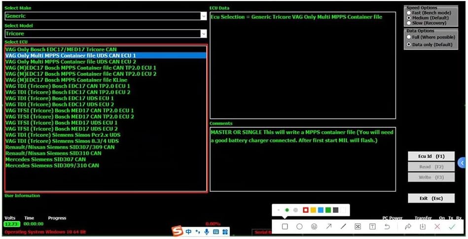 Velocità di lettura/scrittura selezionabile. Scrivere la funzione "Solo modifiche" per una programmazione più rapida (se supportata dall'unità di controllo). Rilevamento automatico di K-line/CAN e possibilità di bypassare e forzare i mezzi di comunicazione preferiti. MPPS V22 è un potente strumento di programmazione. Fornisce lettura/scrittura generali e supporto checksum, ma include anche alcune funzionalità aggiuntive: eccellenti funzionalità di recupero. In alcuni casi, MPPS può ripristinare le unità di controllo che altri strumenti non possono nemmeno comunicare. Lettura e scrittura /parziale selezionabili se l'unità di controllo consente questa funzione. Su alcuni controller, funziona anche se non c'è programma (una memoria vuota). Elusione temporanea 'immobilizzatore per consentire il lampeggiamento sul banco di sui sistemi ME7. Supporto di avvio per unità di controllo con processori C167 e ST10. Sono incluse le funzioni di lettura/scrittura EEprom per alcune unità di controllo.