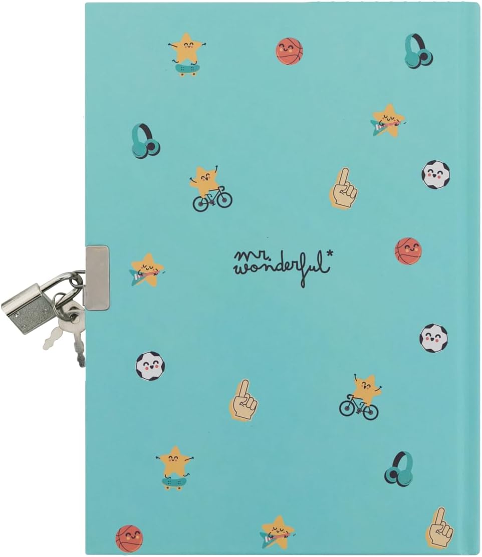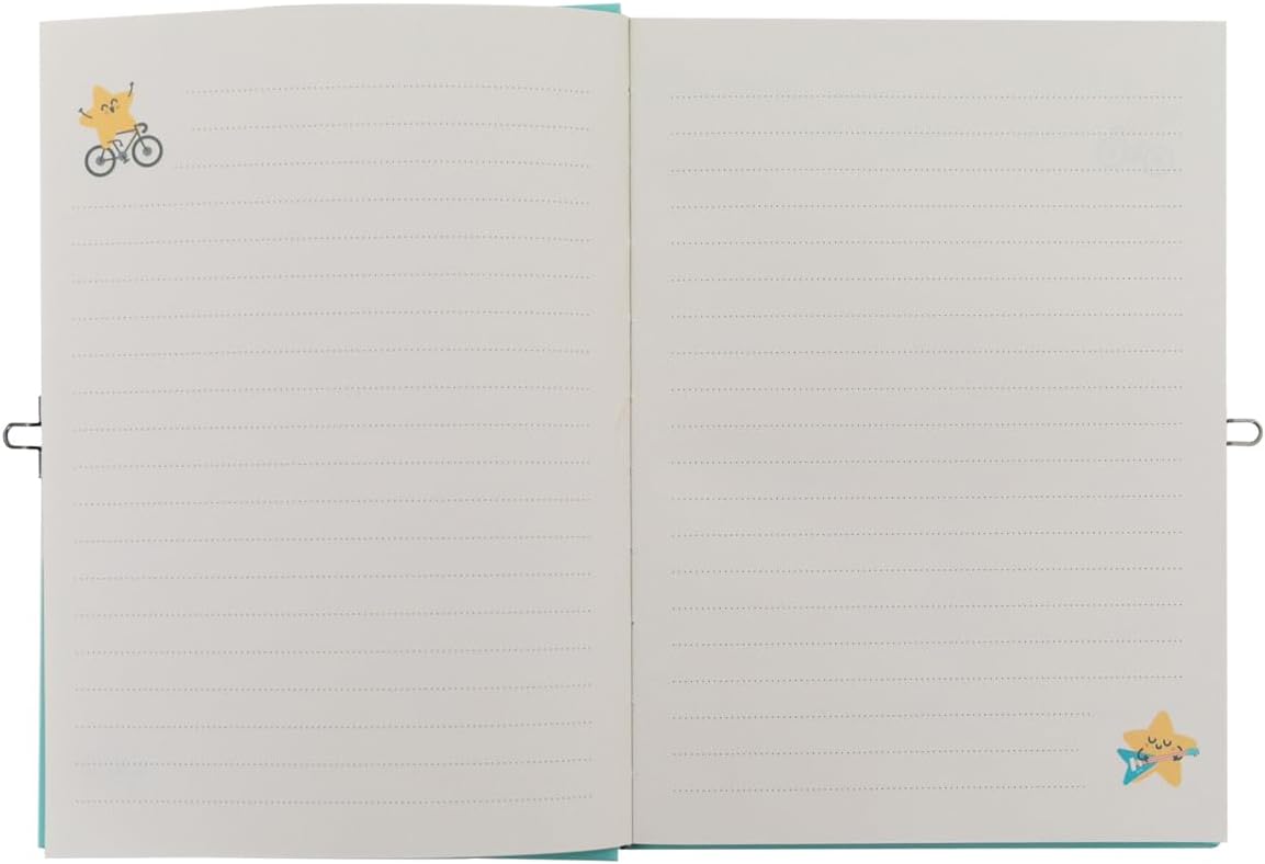 Agenda con lucchetto, comprensiva di due chiavi (di cui una di riserva). Interno di 224 pagine a righe e illustrate. Pagina di presentazione dei dati personali.