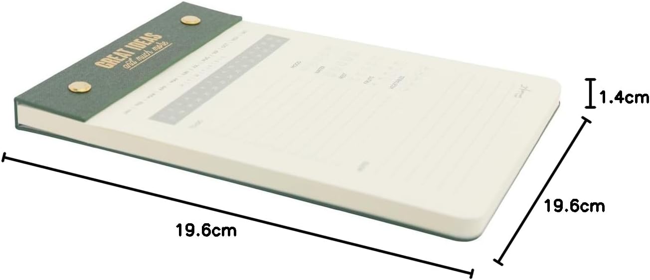 Blocco note verde - Grandi idee e molto altro Blocco note con finitura in tessuto sulla parte superiore Incluso un messaggio in inglese Con 64 fogli, ciascuno per date e note